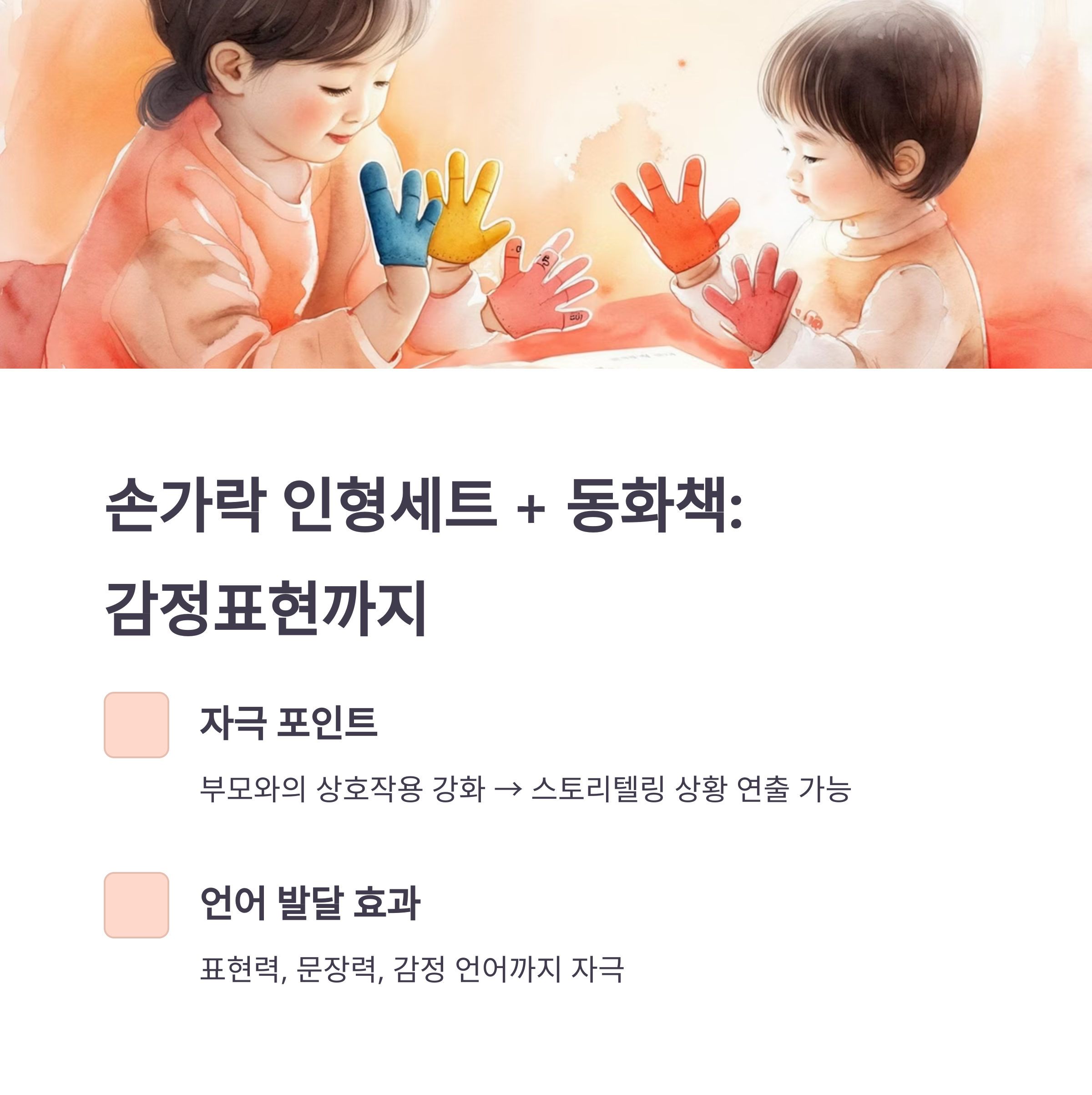 - 자극 포인트: 부모와의 상호작용 강화 → 스토리텔링 상황 연출 가능