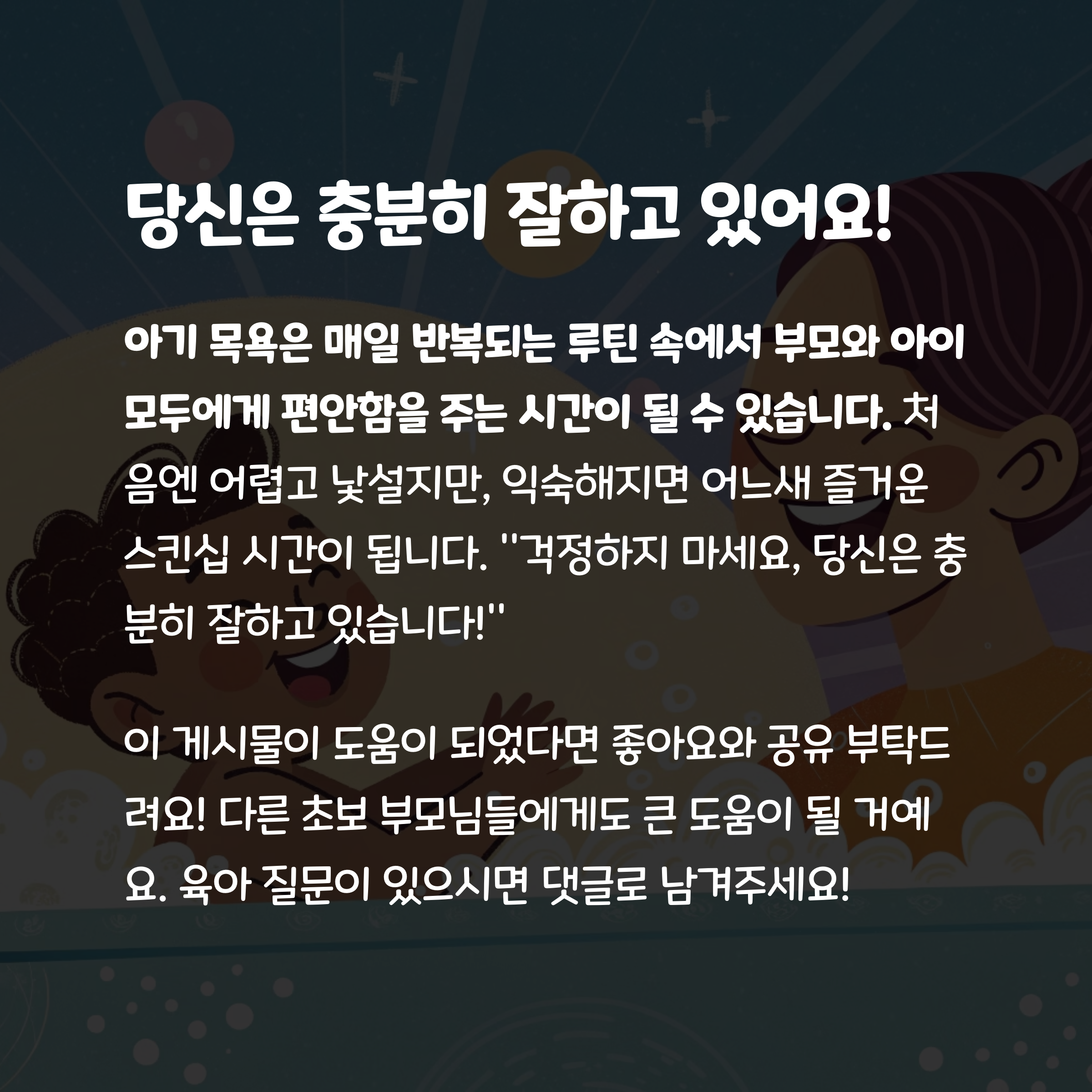 아기 목욕은 매일 반복되는 루틴 속에서 부모와 아이 모두에게 편안함을 주는 시간이 될 수 있습니다.