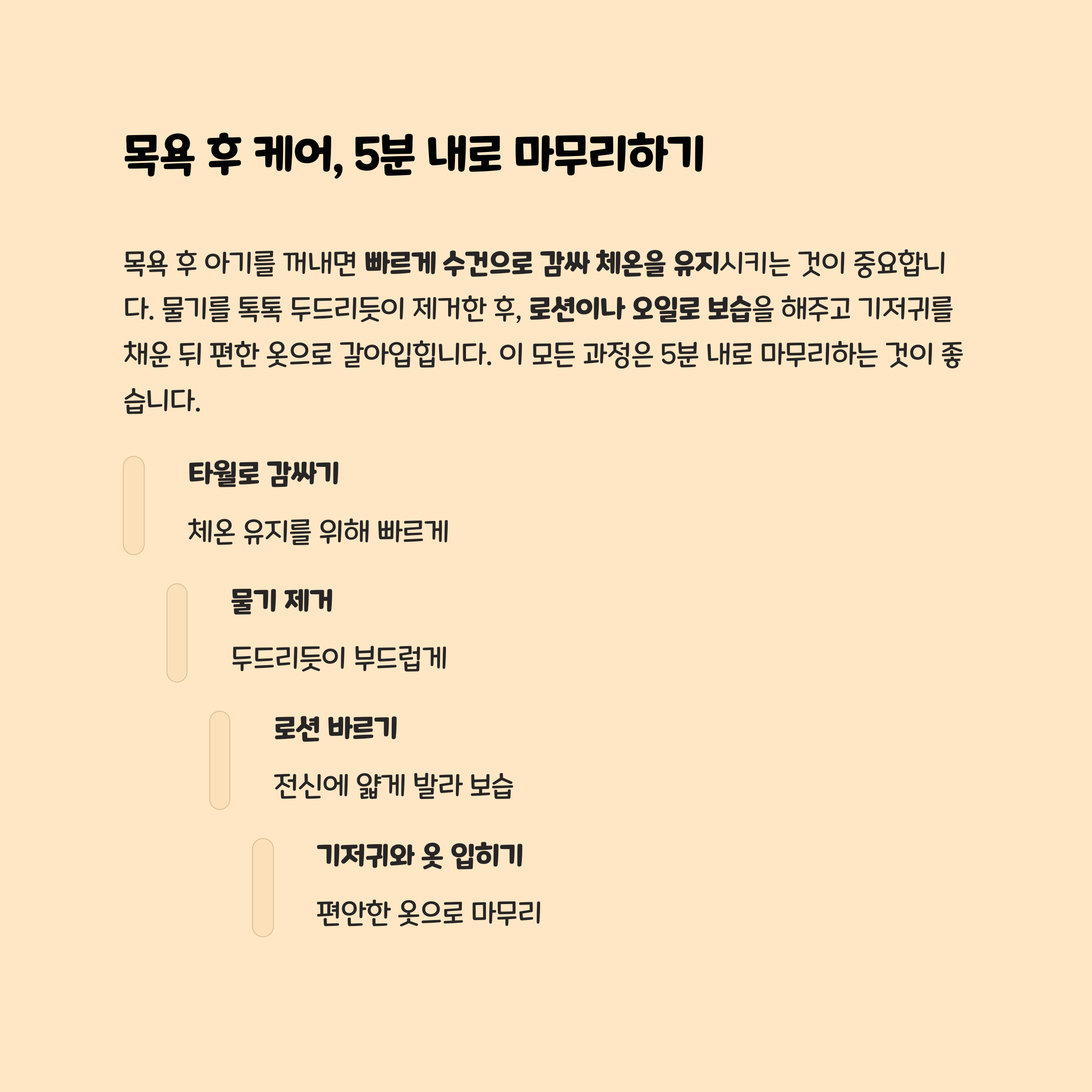 아기 목욕 순서를 기억하기 쉽도록 다음처럼 구성해보세요.