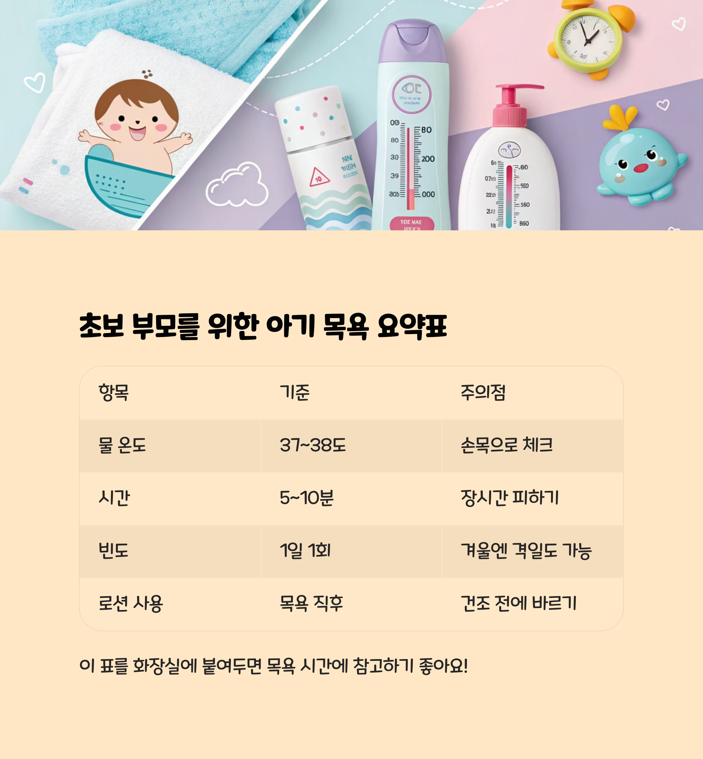 초보 부모에게 꼭 필요한 아기 목욕 요약표