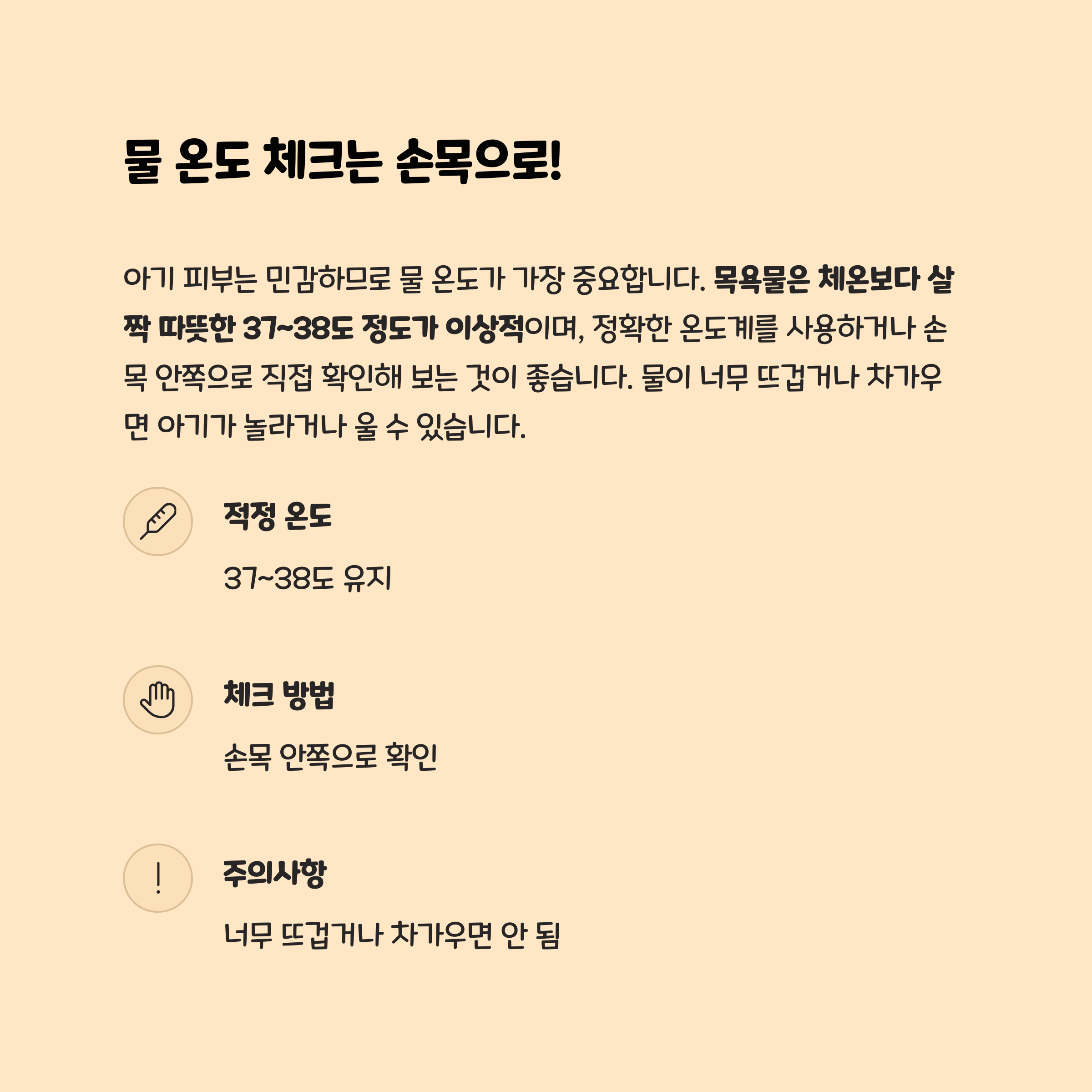 물 온도 체크는 손목으로! 37~38도 유지가 적정