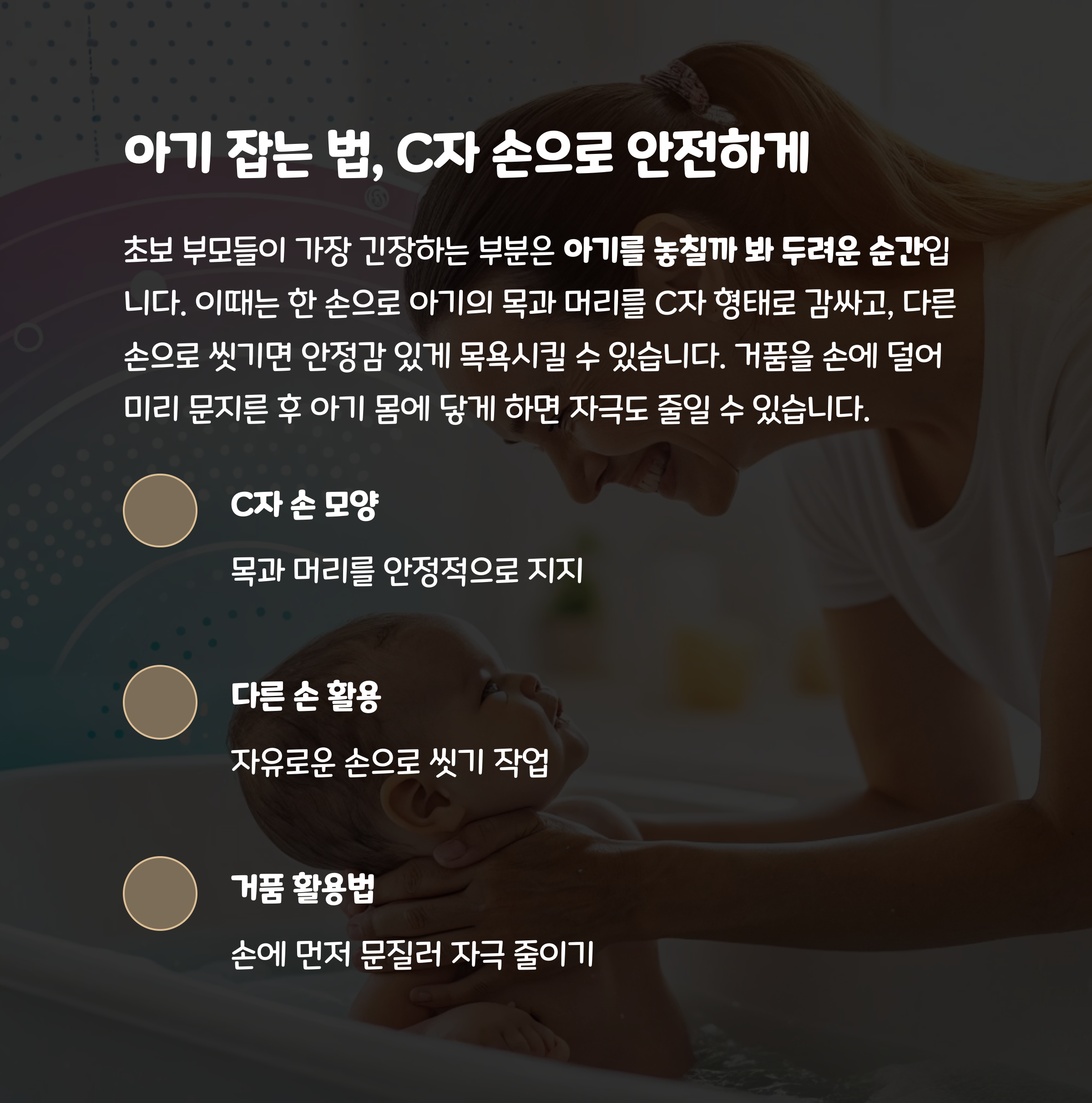 목욕 중 아기 잡는 법, C자 손으로 목과 머리 받치기