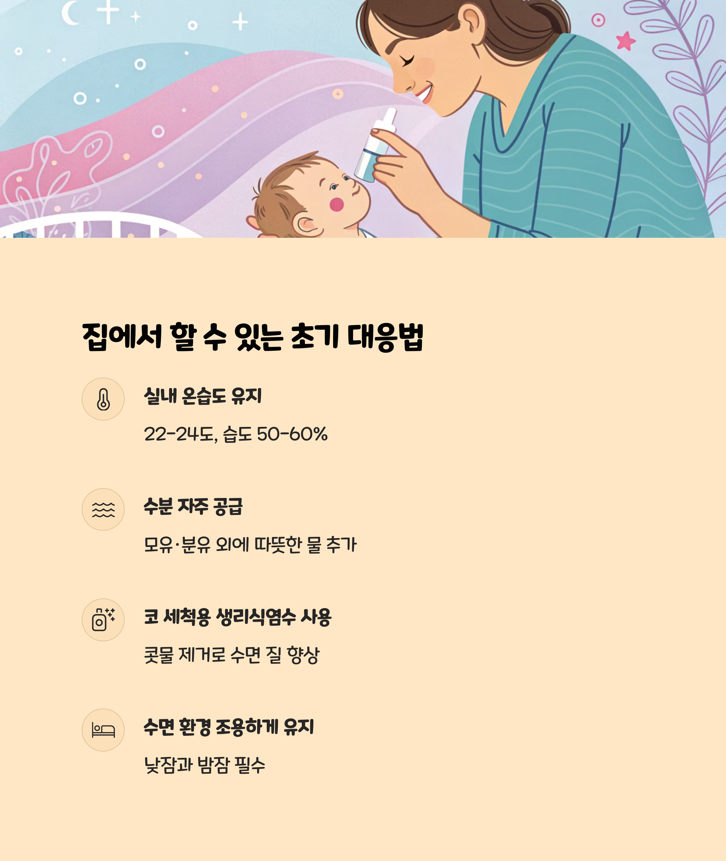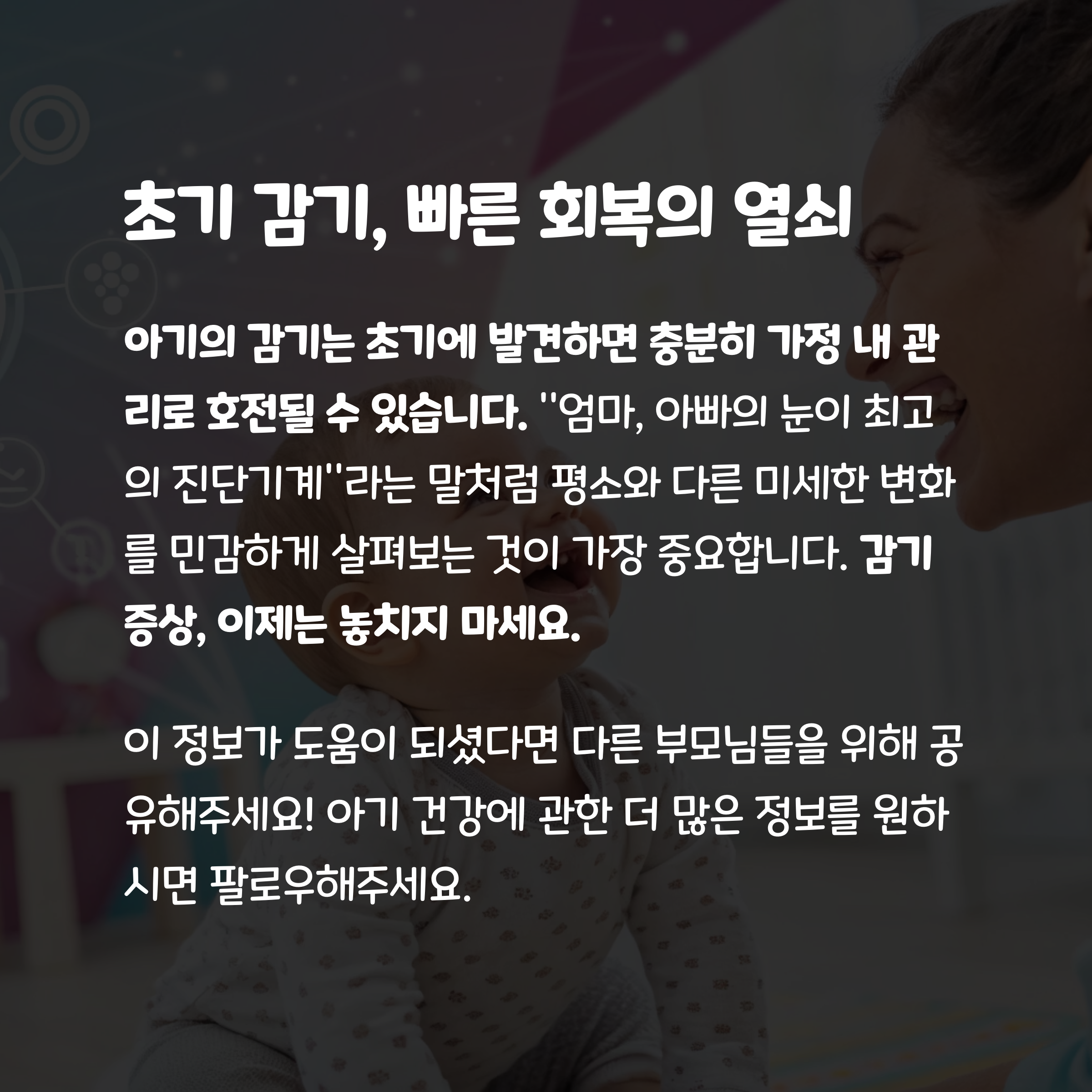 아기의 감기는 초기에 발견하면 충분히 가정 내 관리로 호전될 수 있습니다.