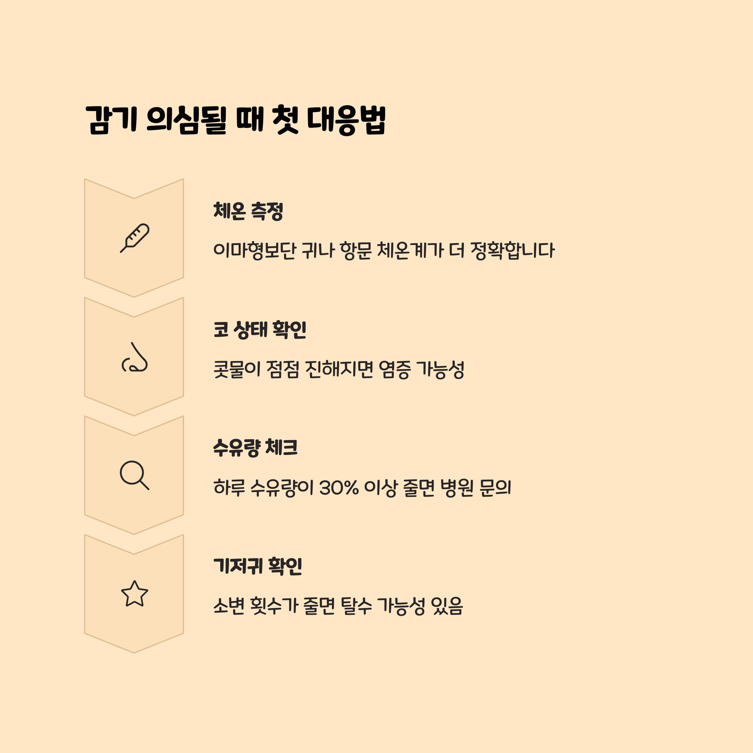 수유 거부 평소보다 먹는 양 감소 코막힘 또는 인후통 의심