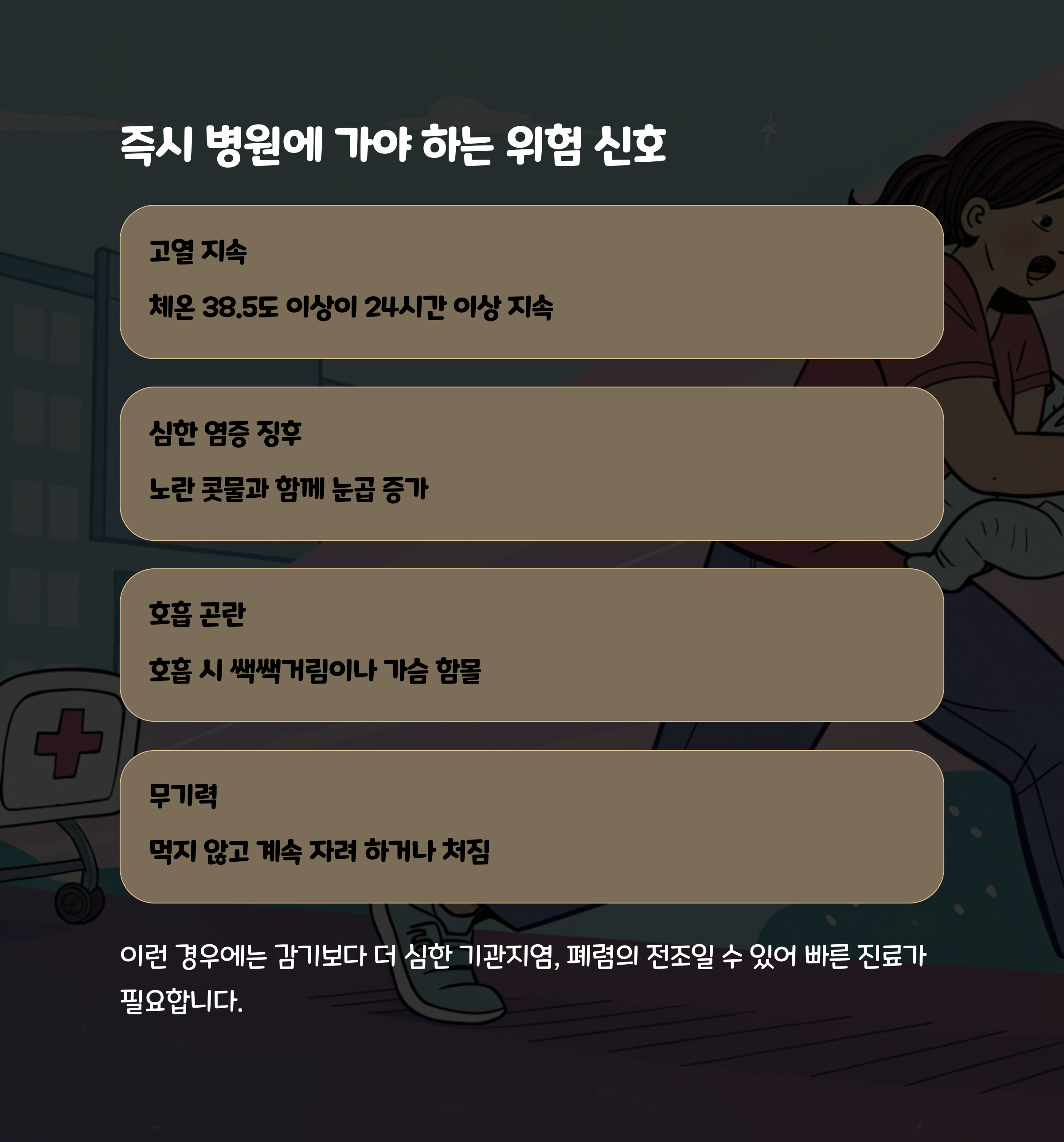 → 이런 경우에는 감기보다 더 심한 기관지염, 폐렴의 전조일 수 있어