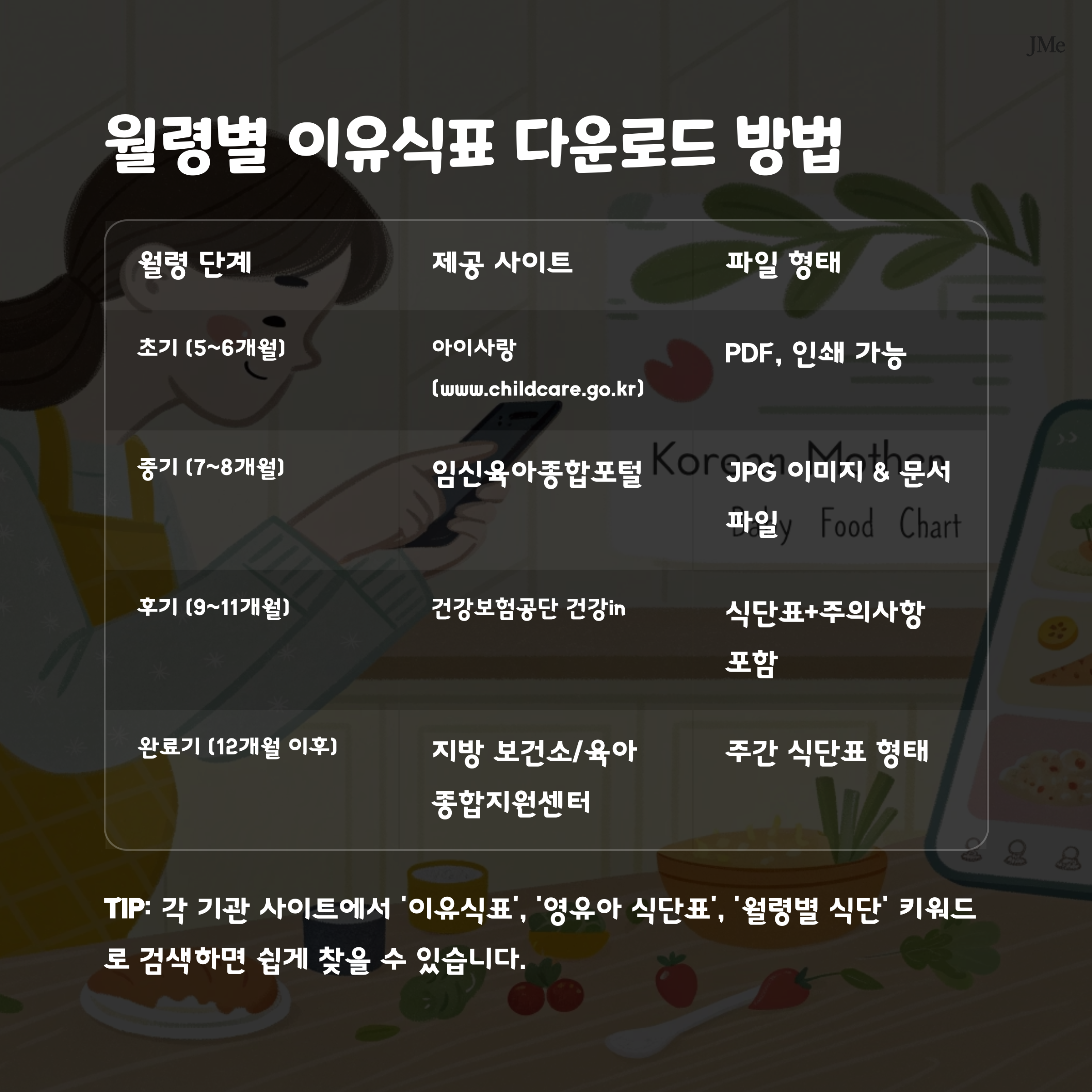 다음은 정부 포털과 지자체 홈페이지를 통한 월령별 이유식표 다운로드 경로입니다.
