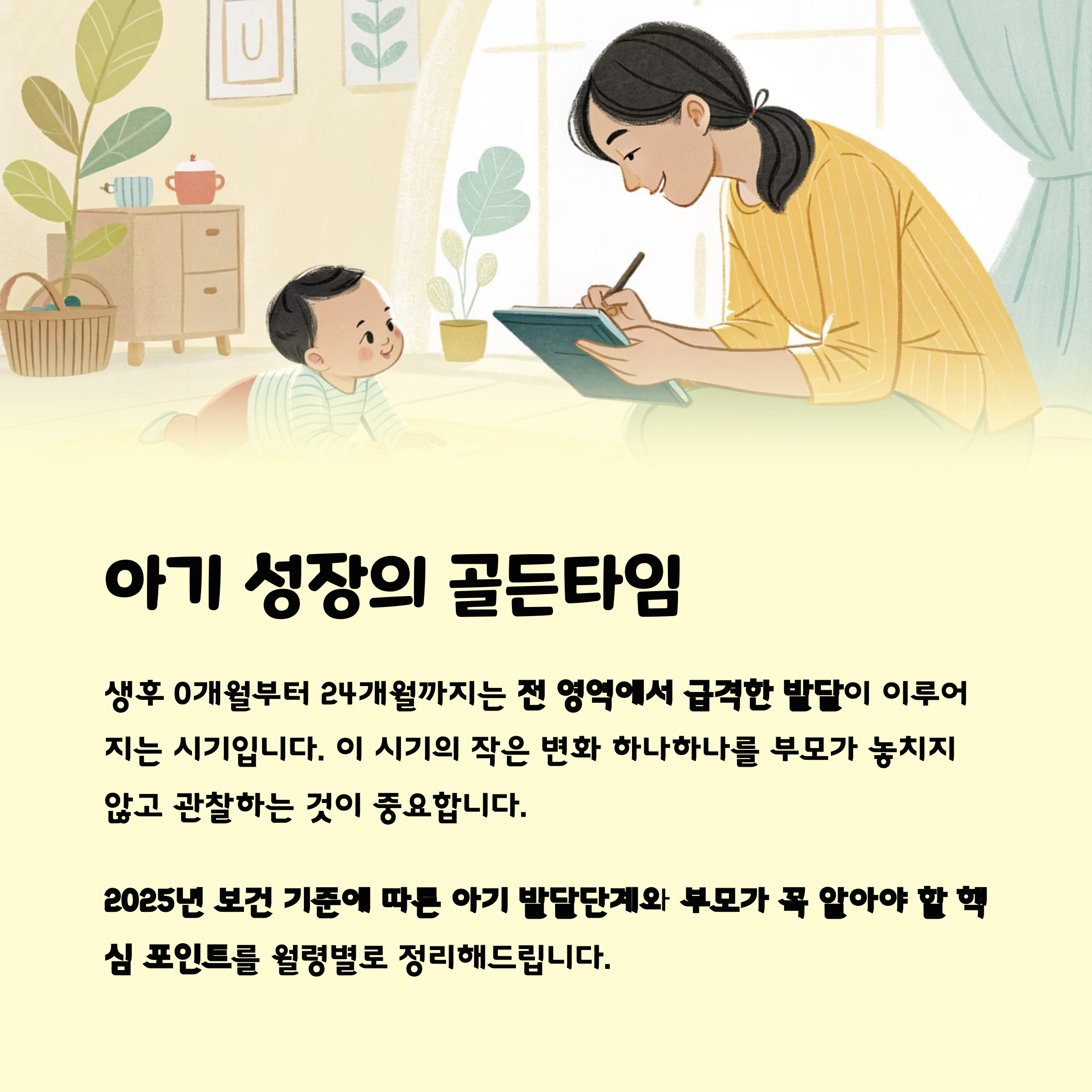 본 글에서는 2025년 보건 기준에 따른 아기 발달단계와 부모가 꼭 알아야 할 핵심 포인트를 월령별로 정리해드립니다.