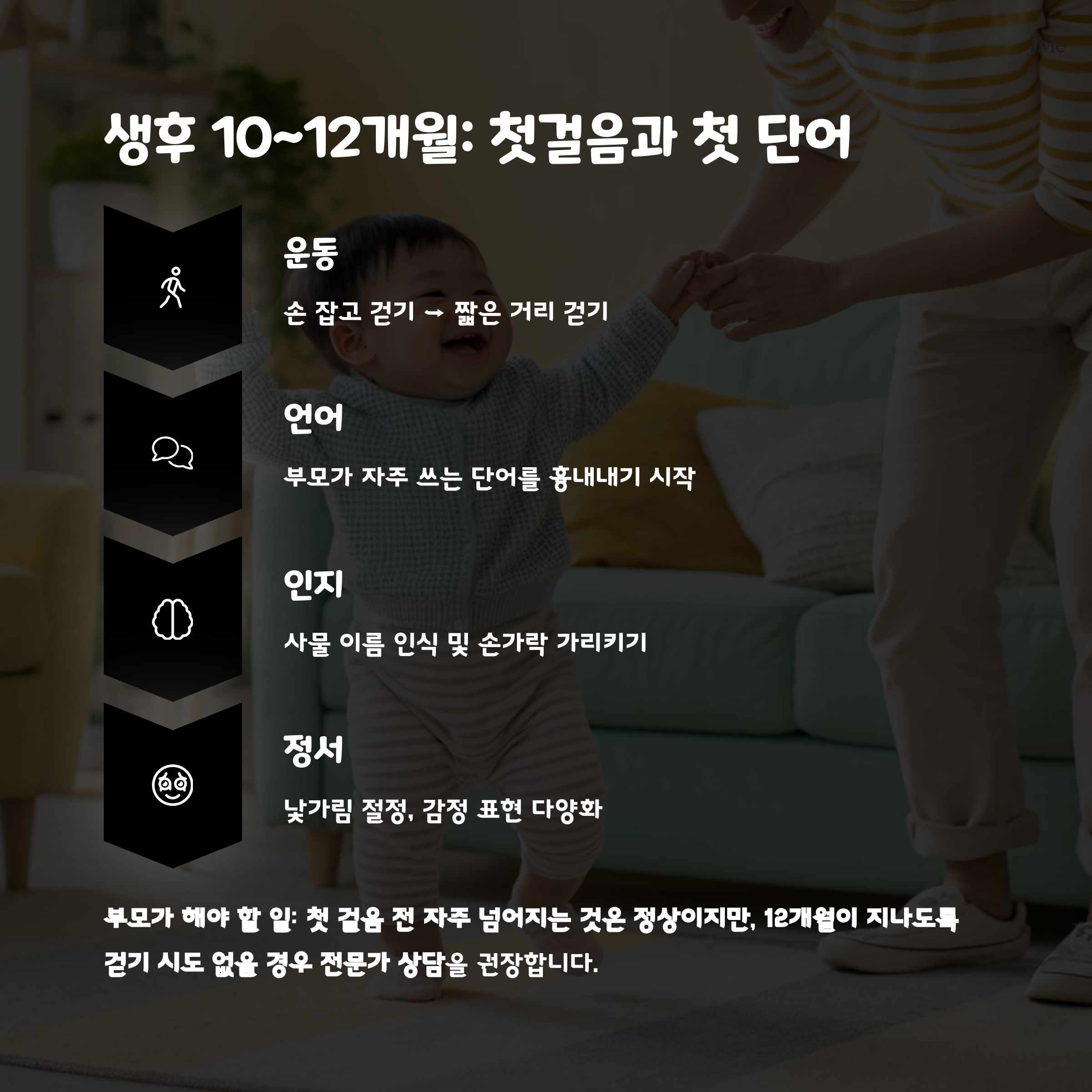 12개월이 지나도록 걷기 시도 없을 경우 전문가 상담을 권장합니다.