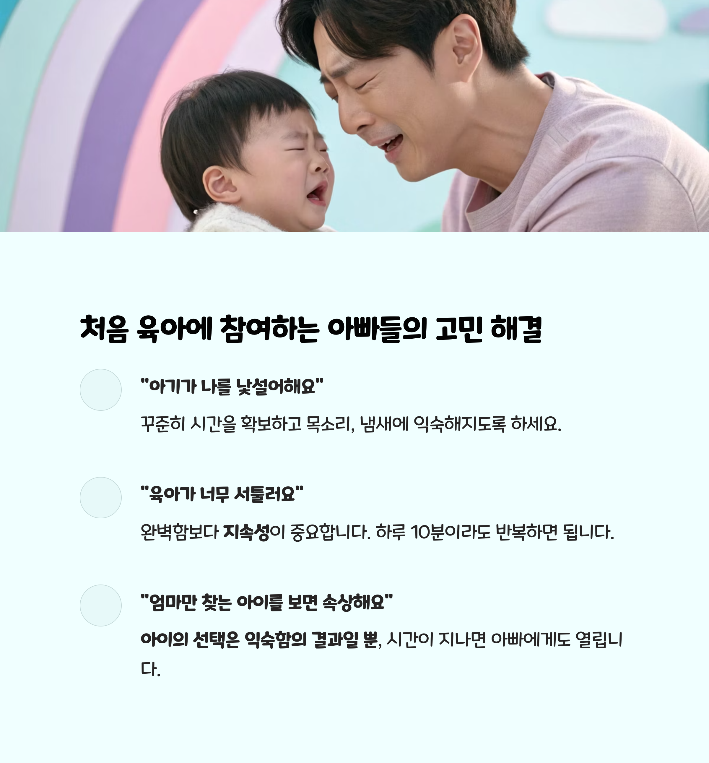이 글에서는 아빠가 부담 없이 육아에 자연스럽게 참여할 수 있는 첫걸음 방법을 알려드립니다.