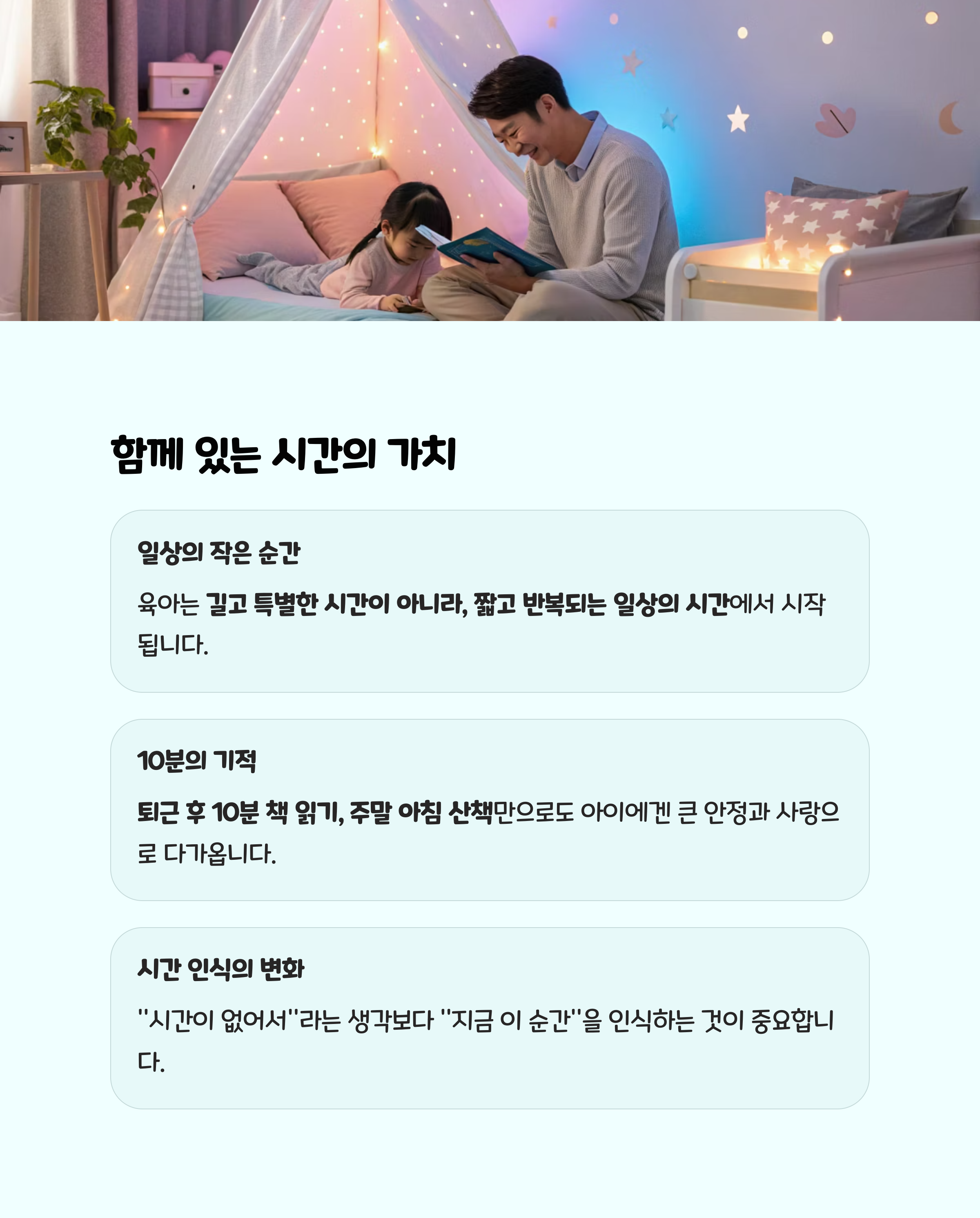 그러나 육아는 길고 특별한 시간이 아니라, 짧고 반복되는 일상의 시간에서 시작됩니다.