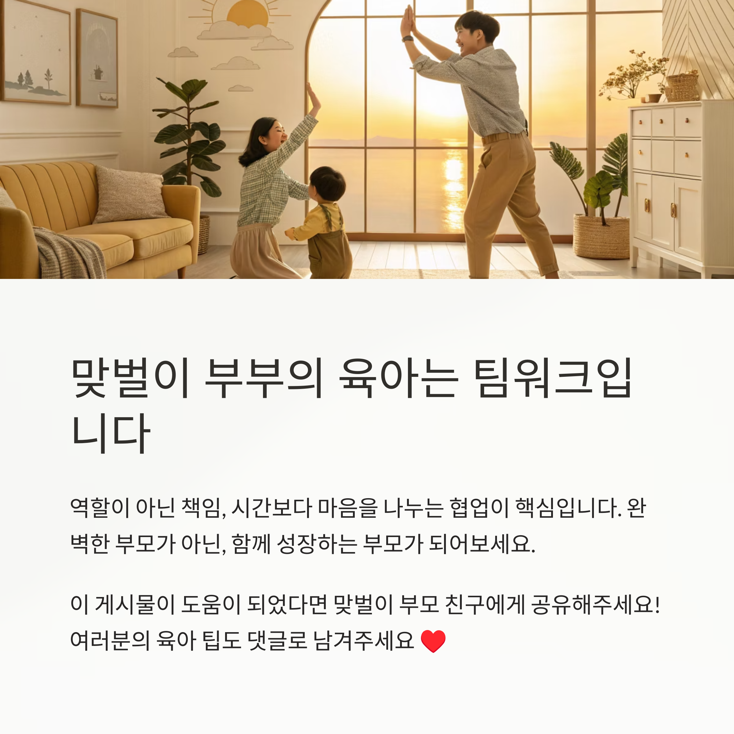 육아는 둘이 함께 해야 할 중요한 공동 과제입니다