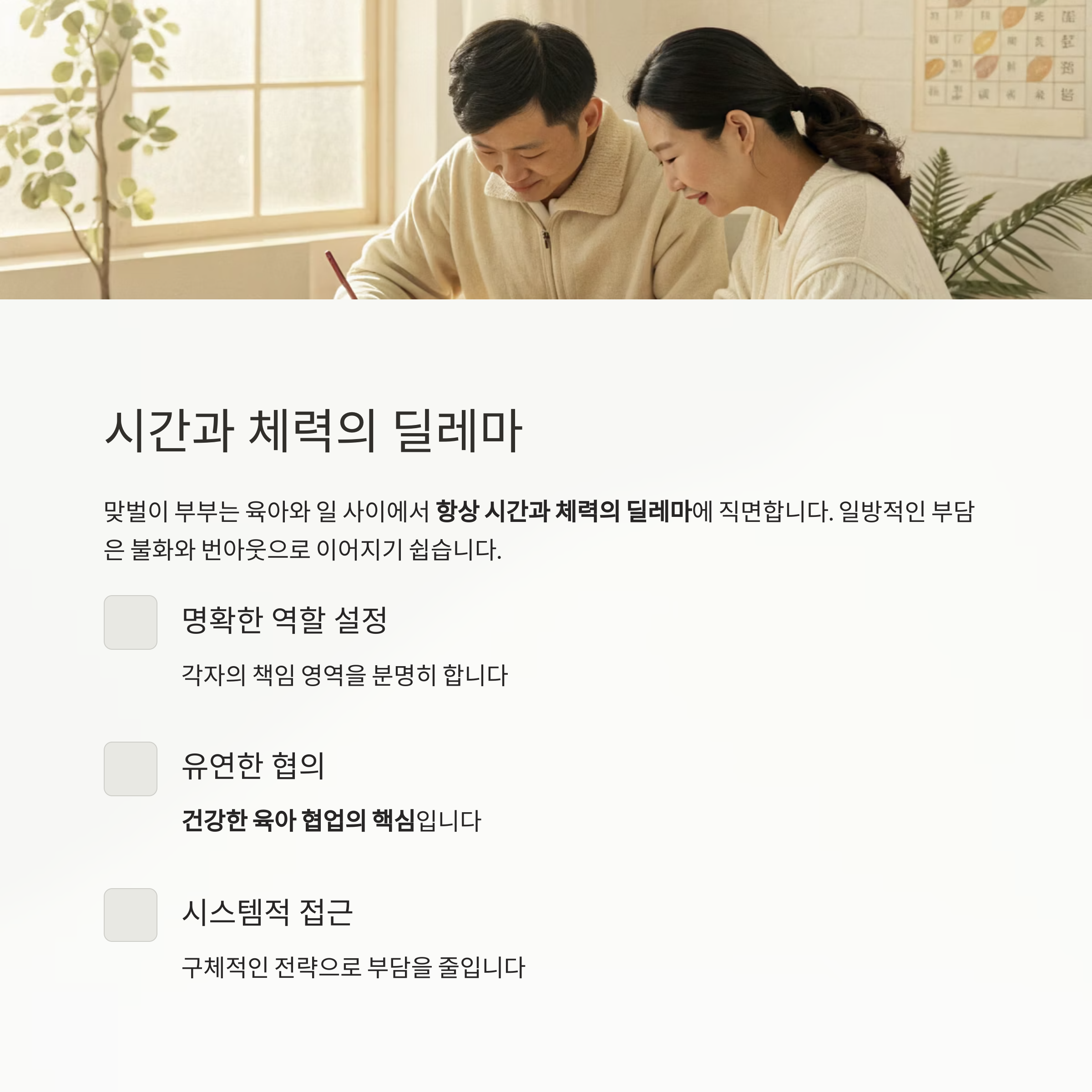 맞벌이 부부가 함께할 수 있는 구체적인 전략을 안내드립니다