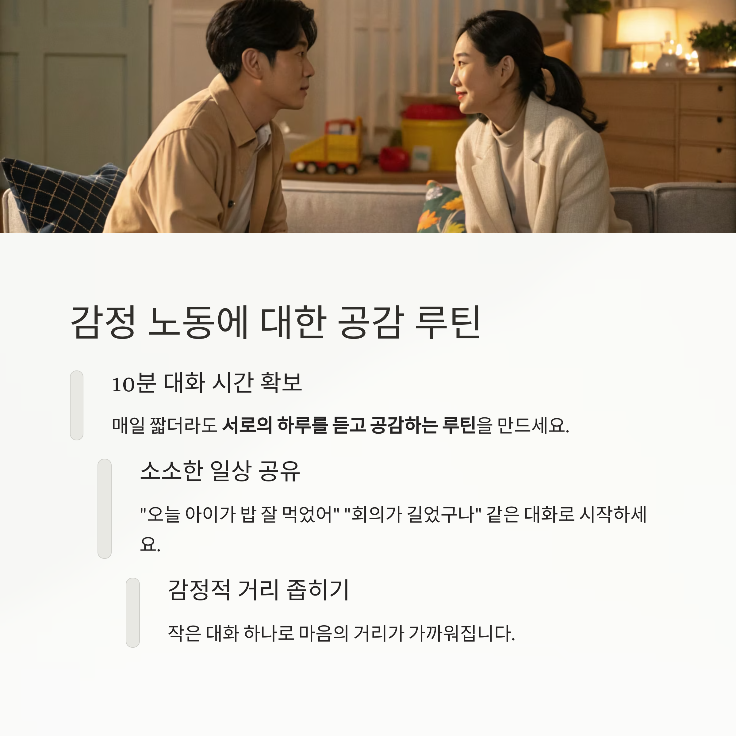 서로의 하루를 듣고 공감하는 루틴을 만드는 것이 효과적입니다