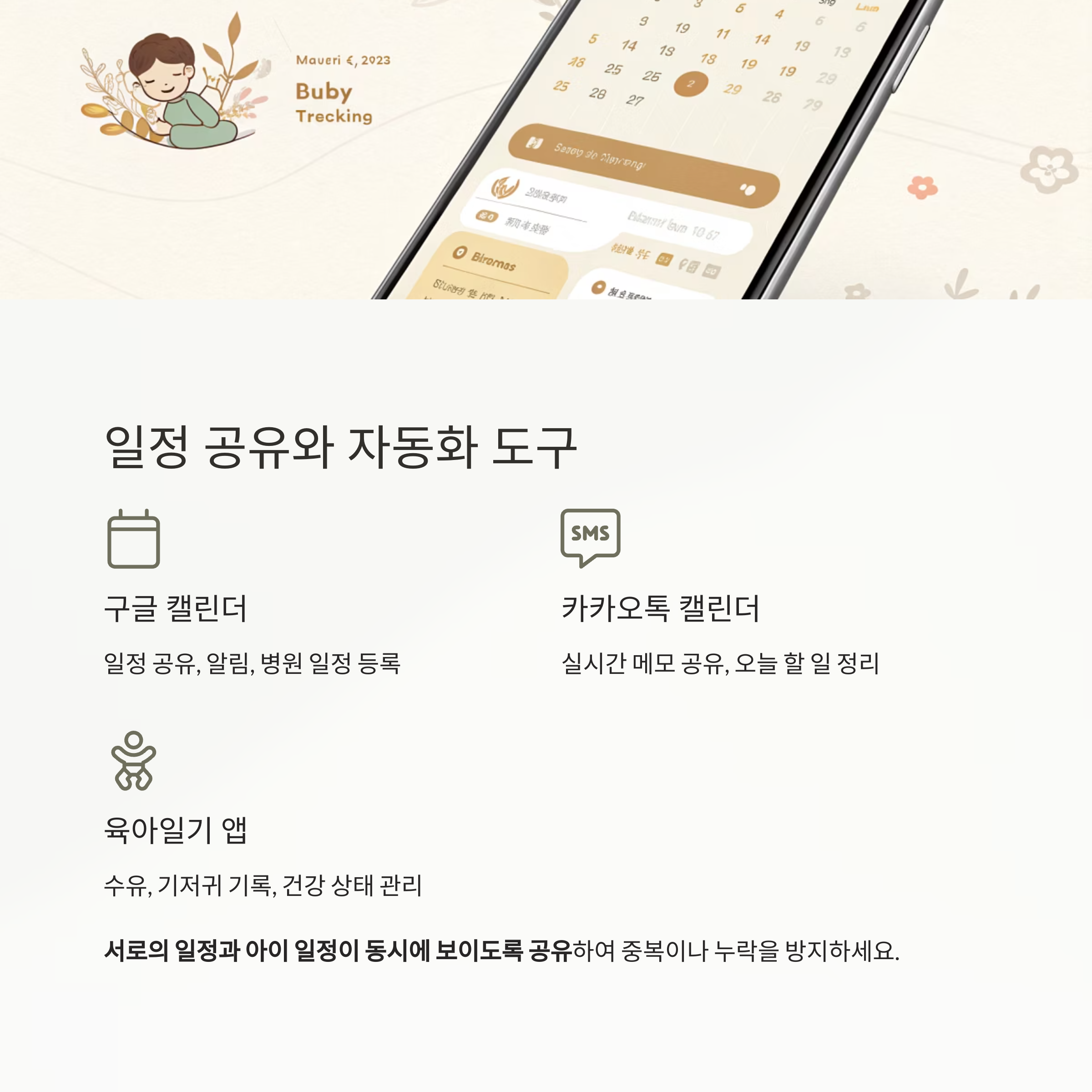 서로의 일정과 아이 일정이 동시에 보이도록 공유하는 것이 중요합니다