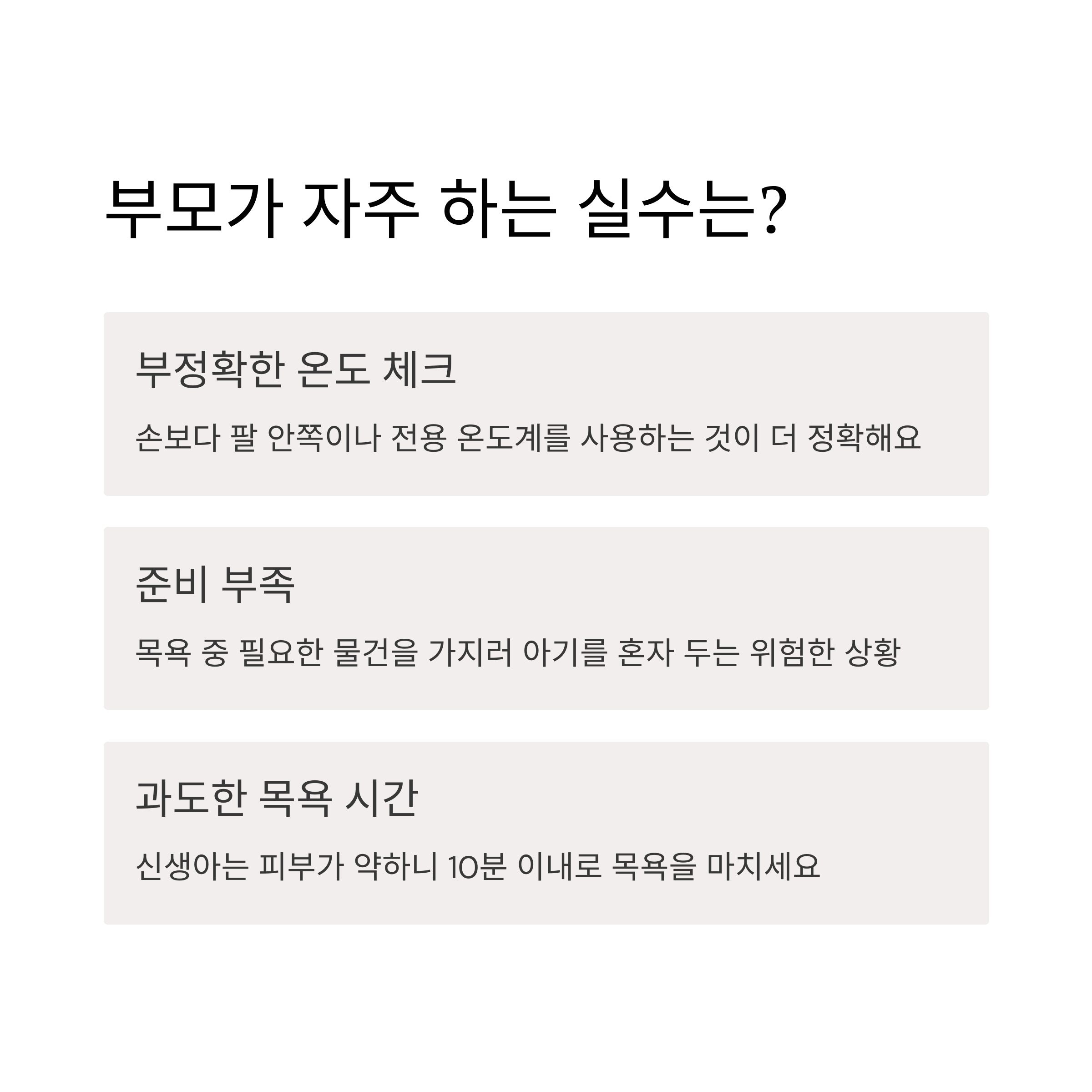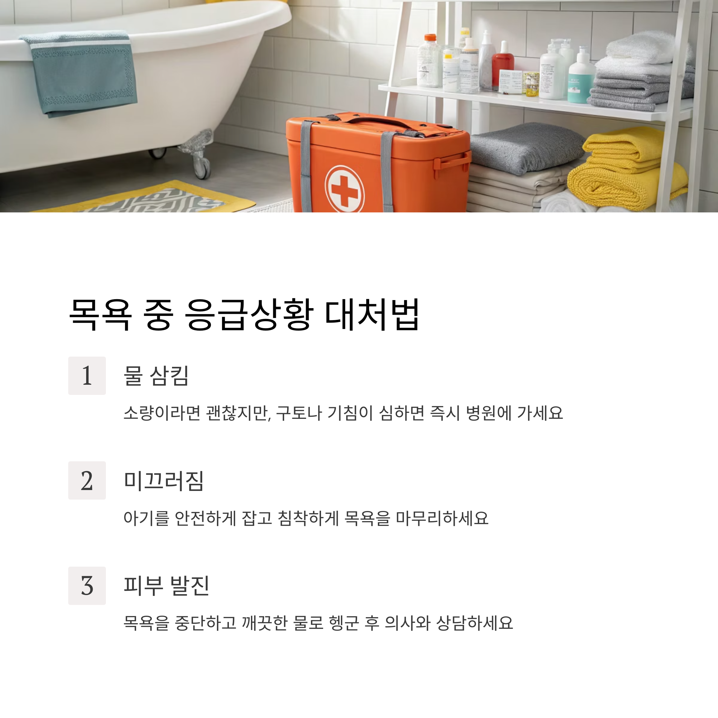 • 목욕 전에 수건과 기저귀를 꼭 미리 준비!