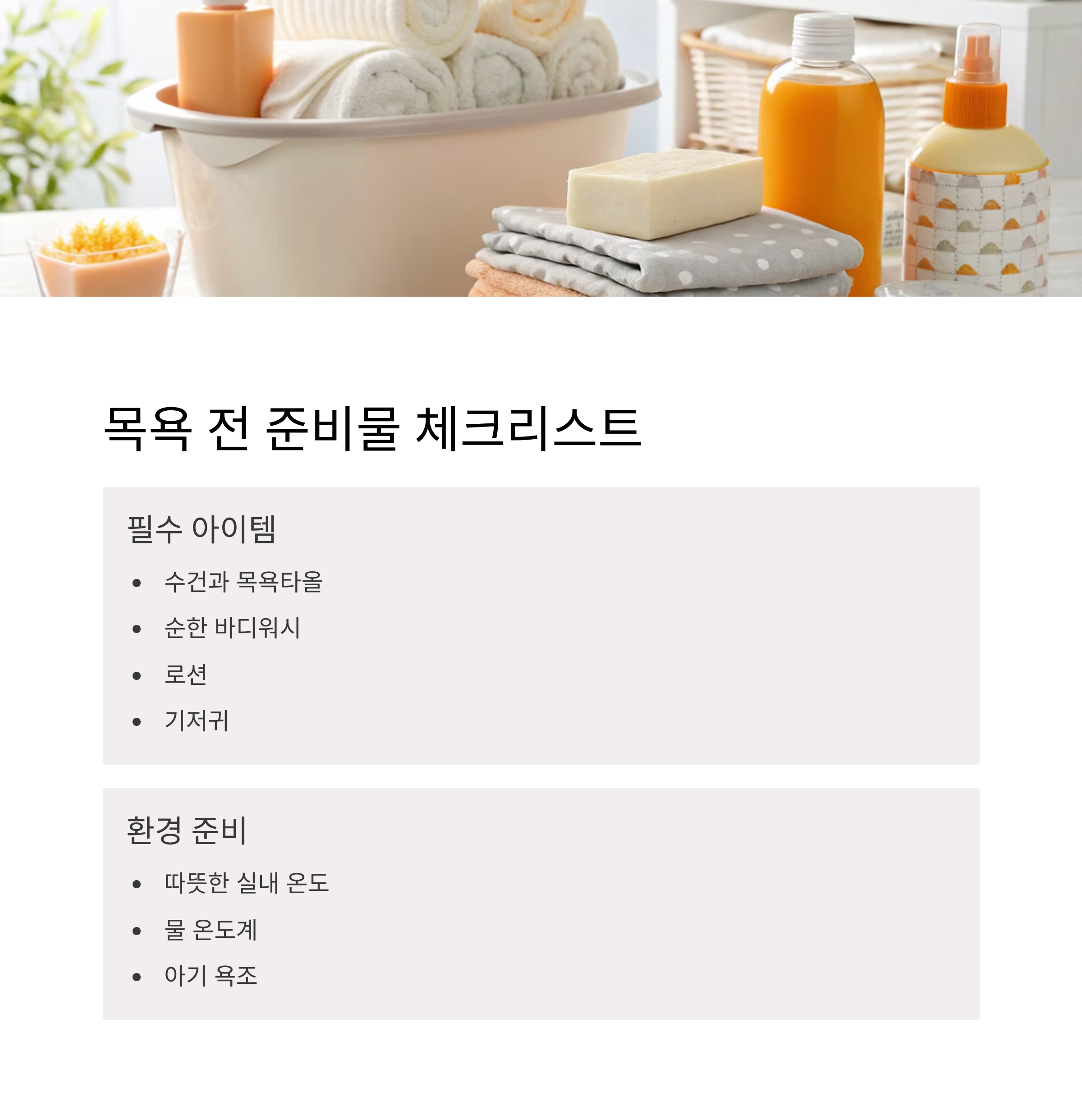 준비물 수건, 목욕타올, 순한 바디워시, 로션, 기저귀