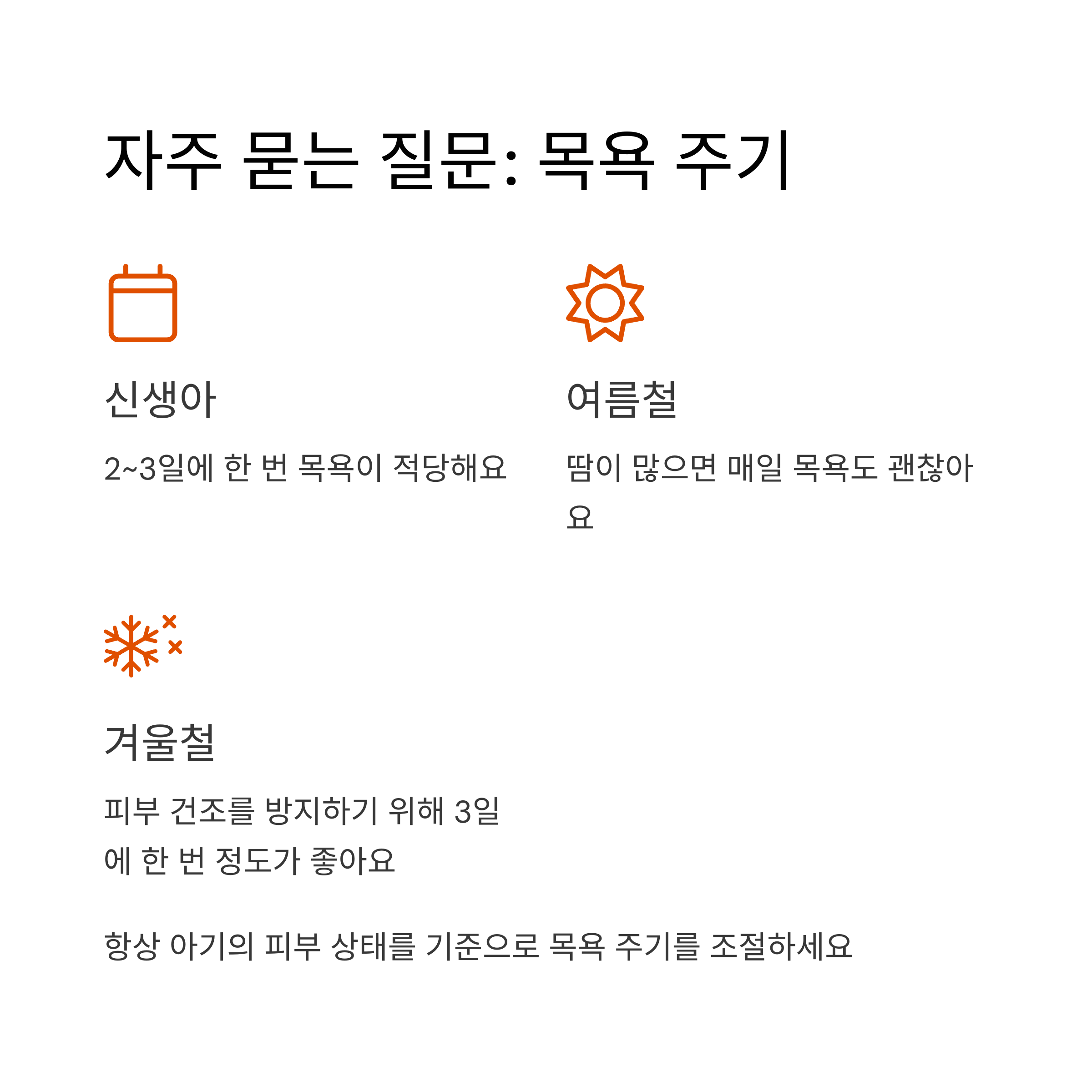 A 피부 상태를 기준으로 목욕 주기를 조절하세요.
