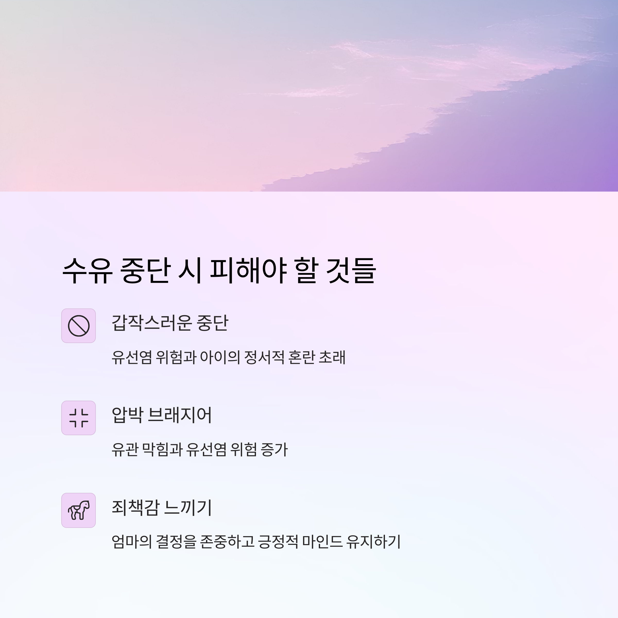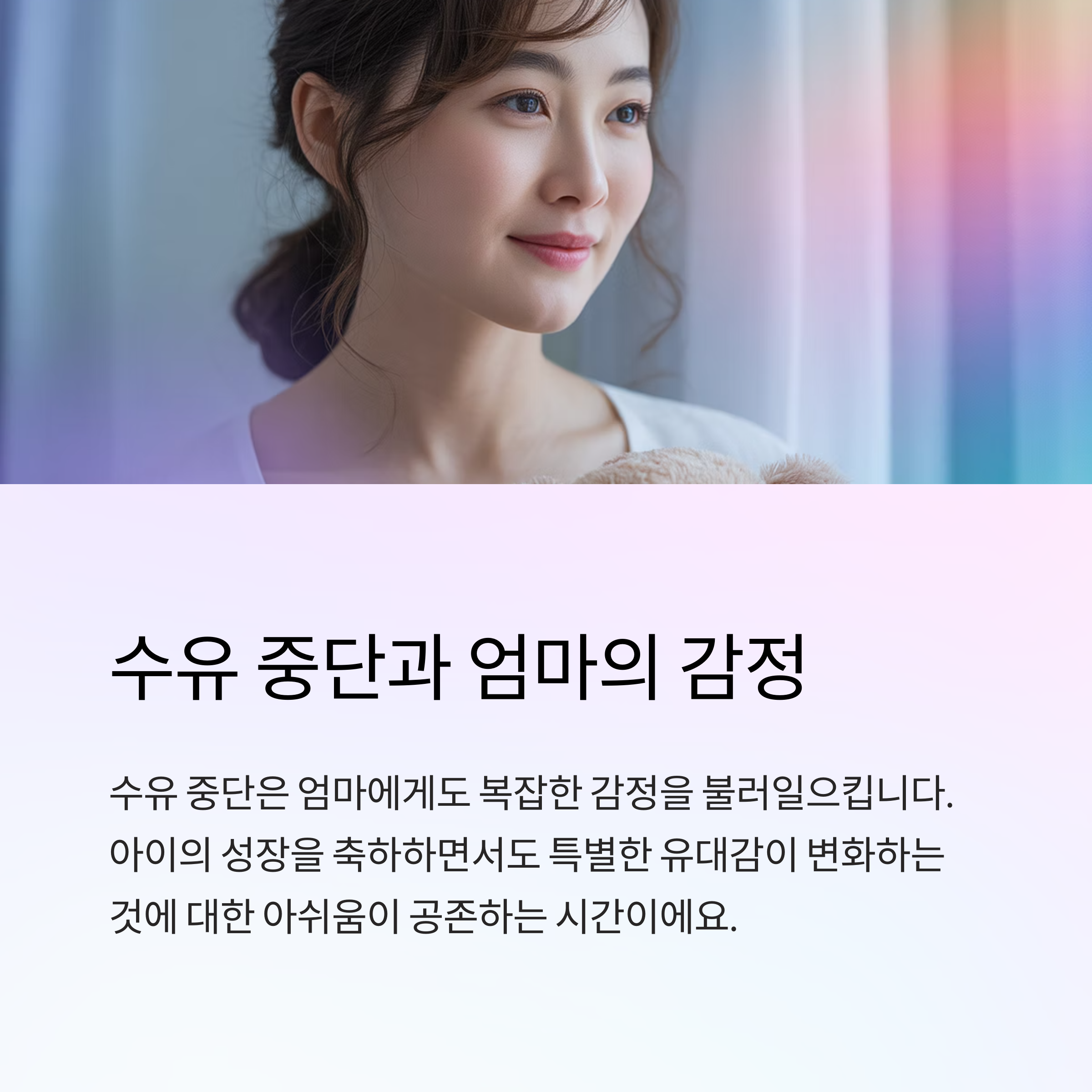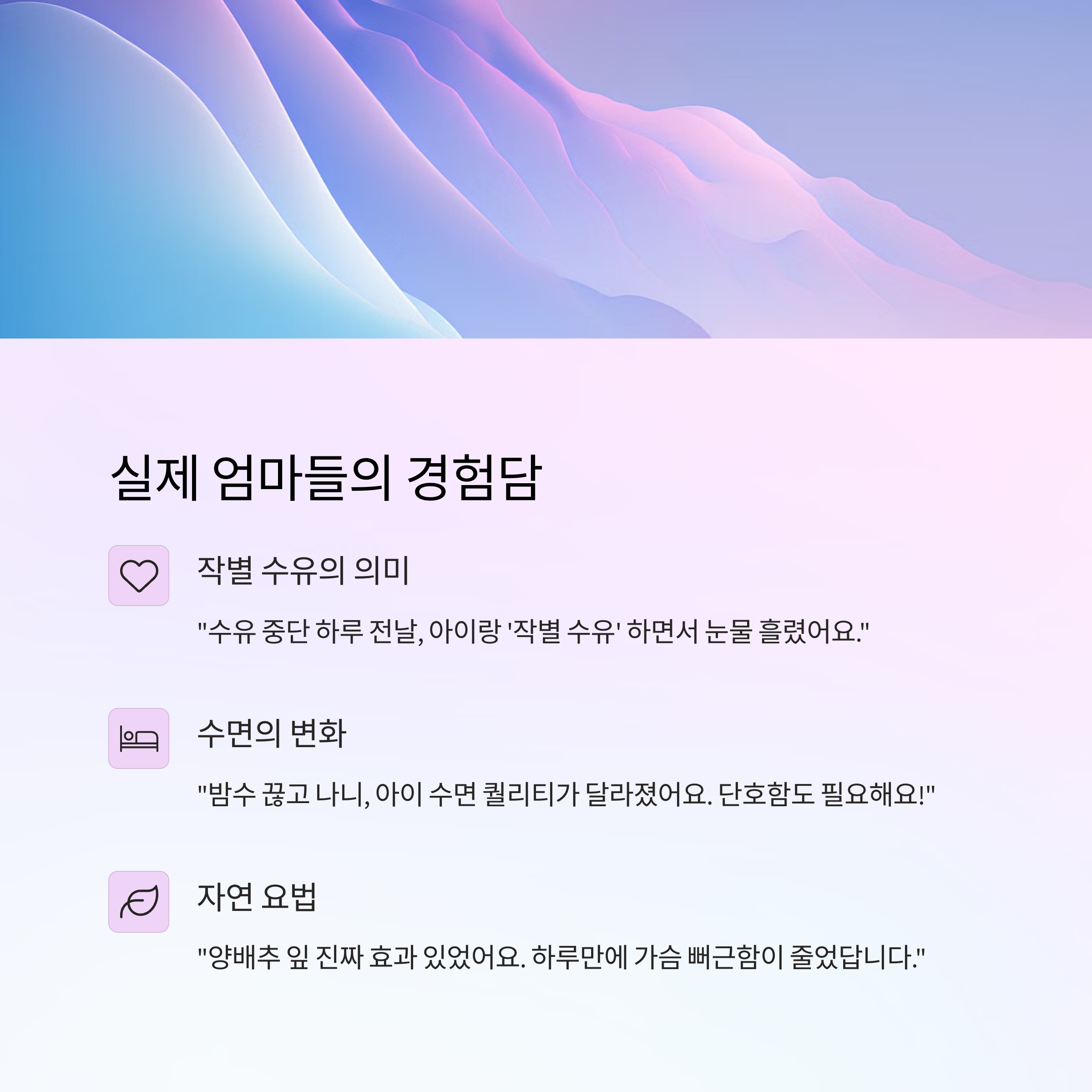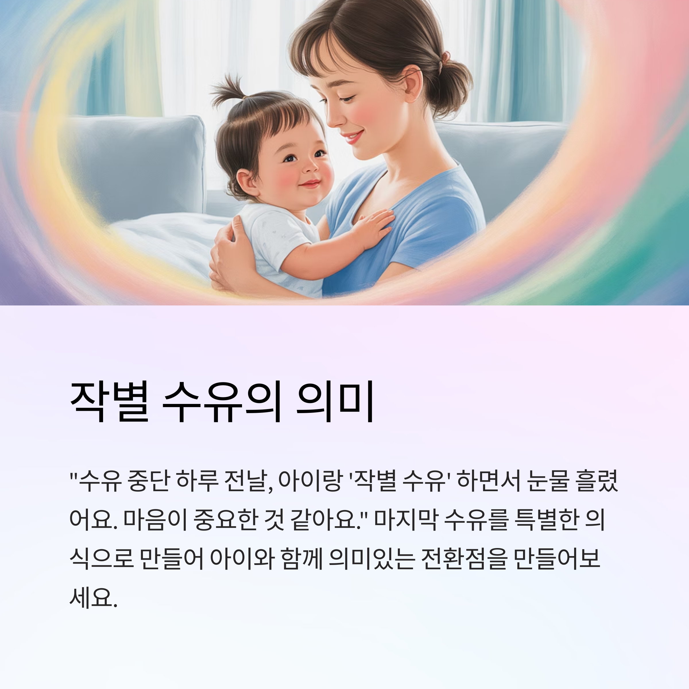 - "수유 중단 하루 전날, 아이랑 ‘작별 수유’ 하면서 눈물 흘렸어요. 마음이 중요한 것 같아요."