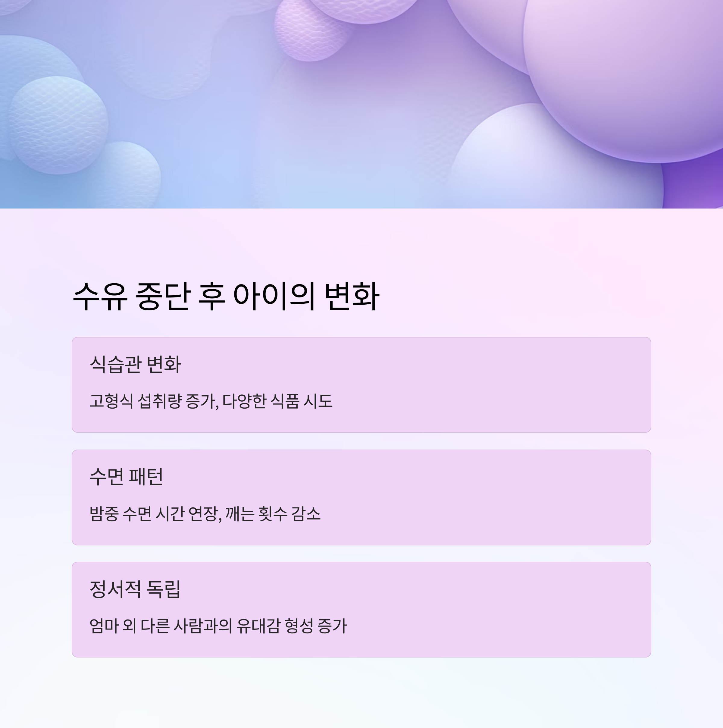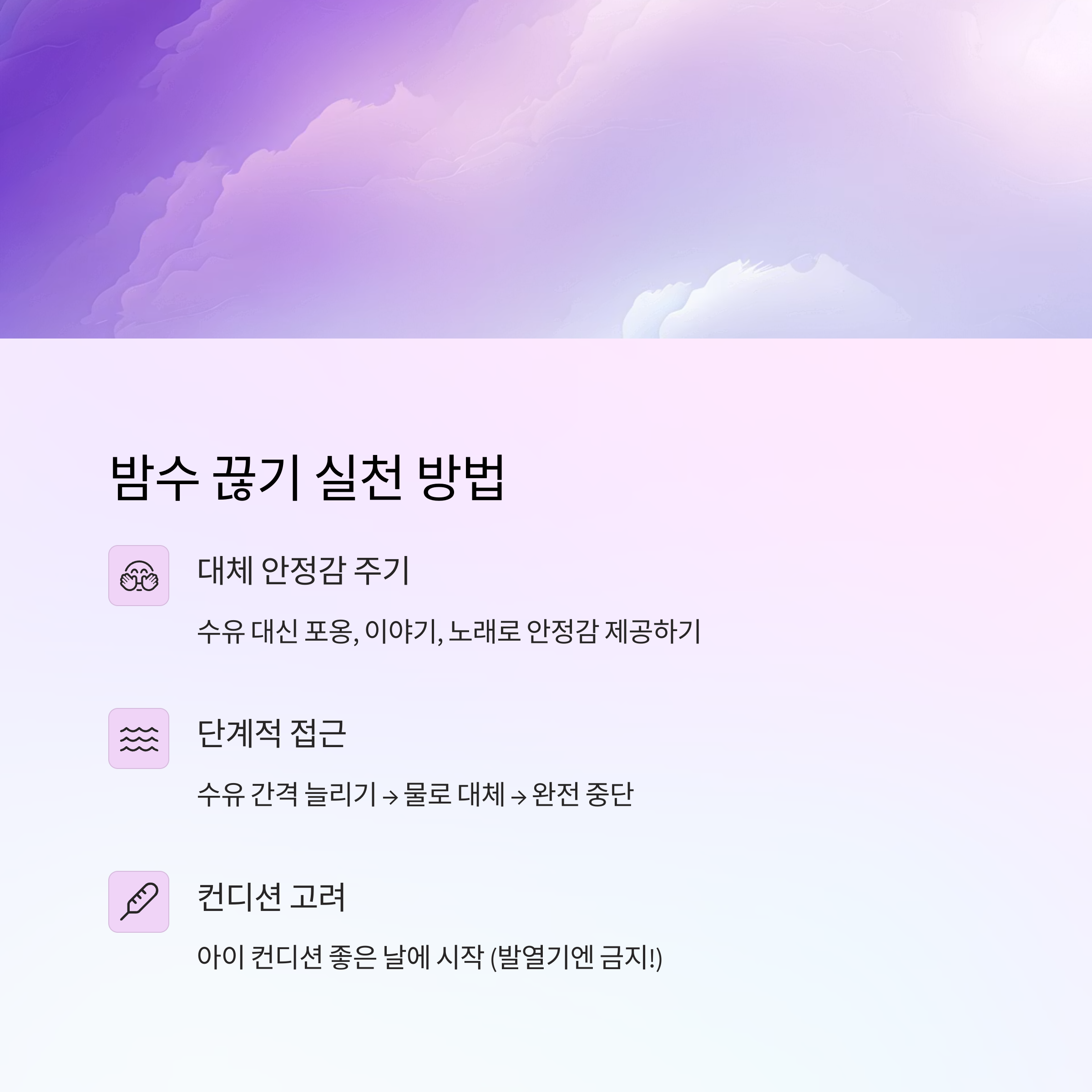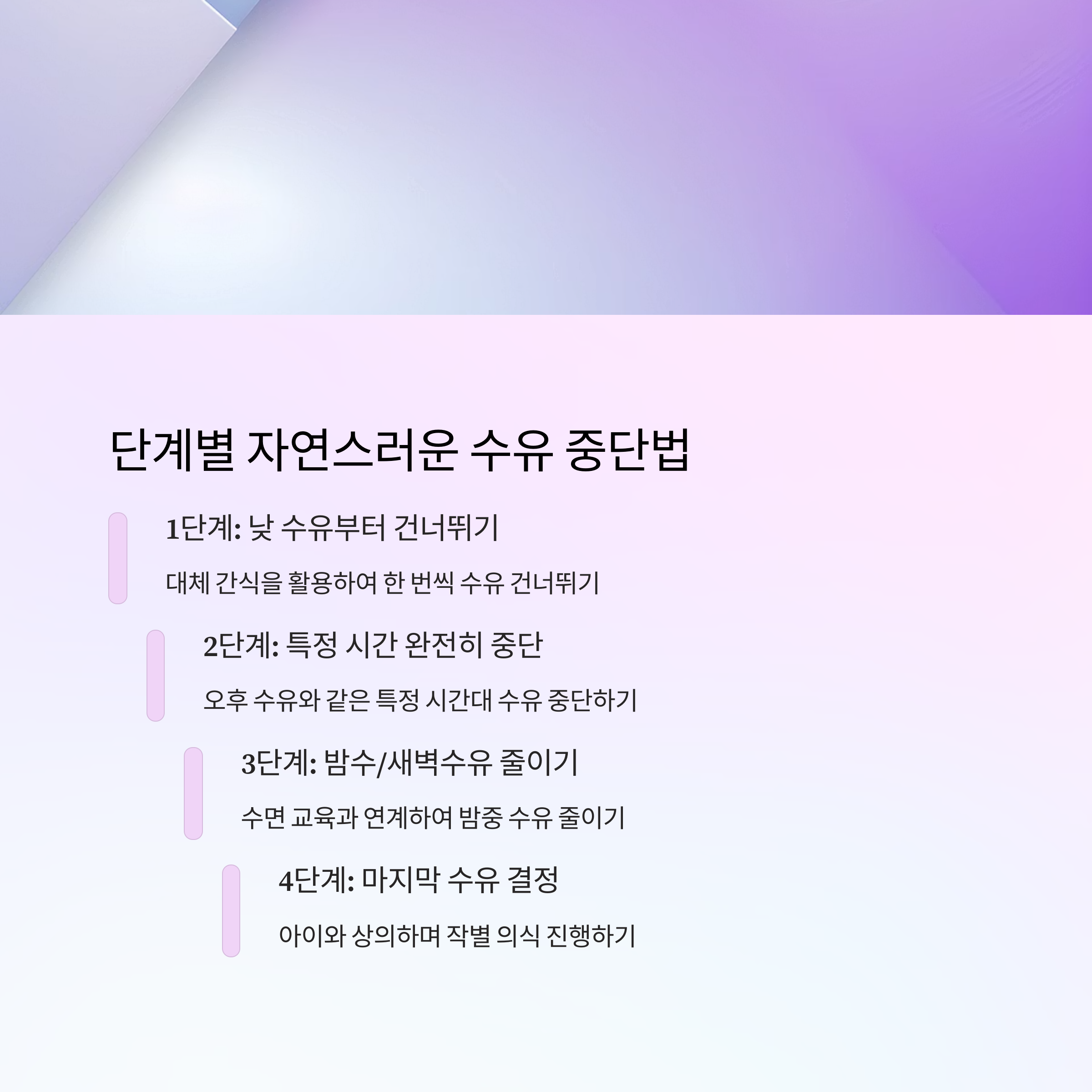 | 4단계 | 아이와 상의하며 마지막 수유 결정 (작별 의식 진행) |