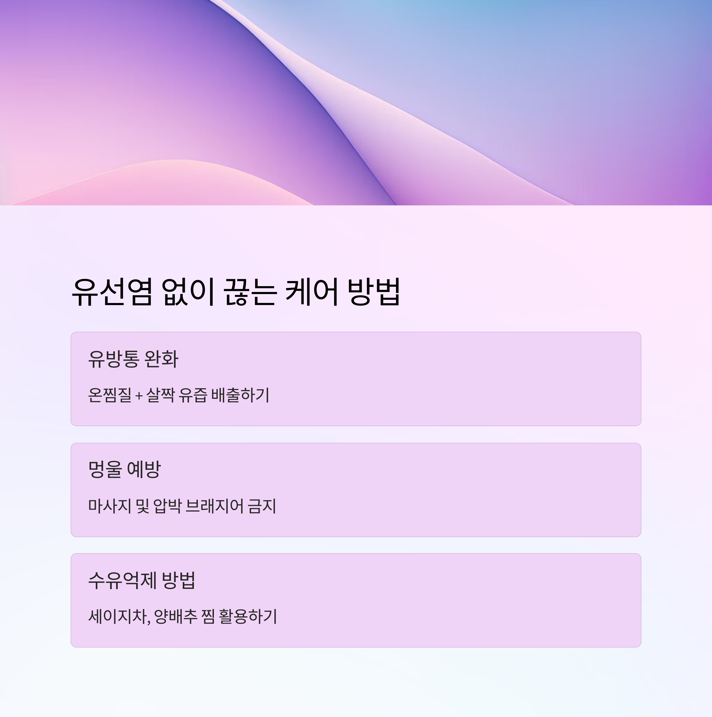 | 유방통 완화 | 온찜질 + 살짝 유즙 배출 |