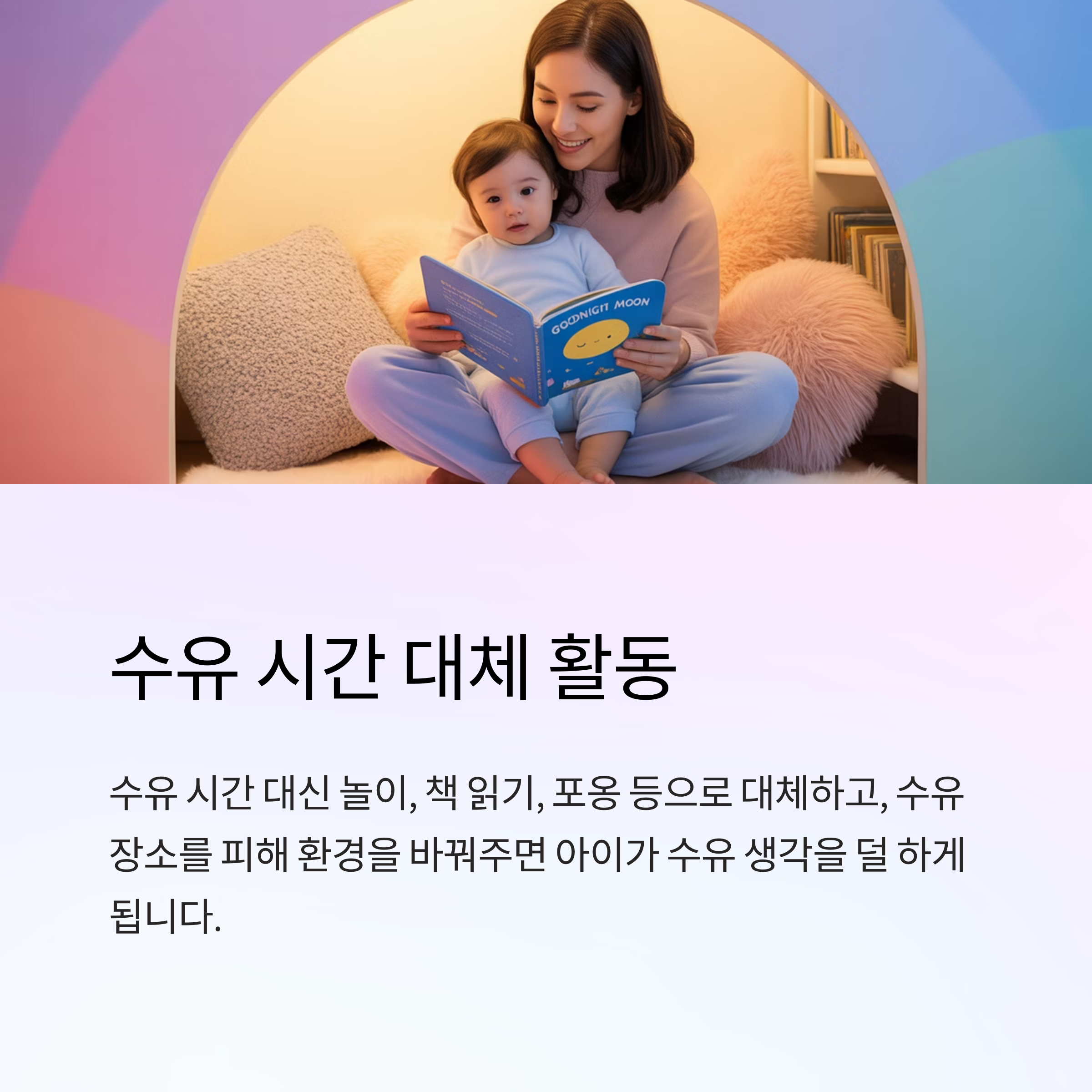 - 수유 시간 대신 놀이, 책 읽기, 포옹 등으로 대체