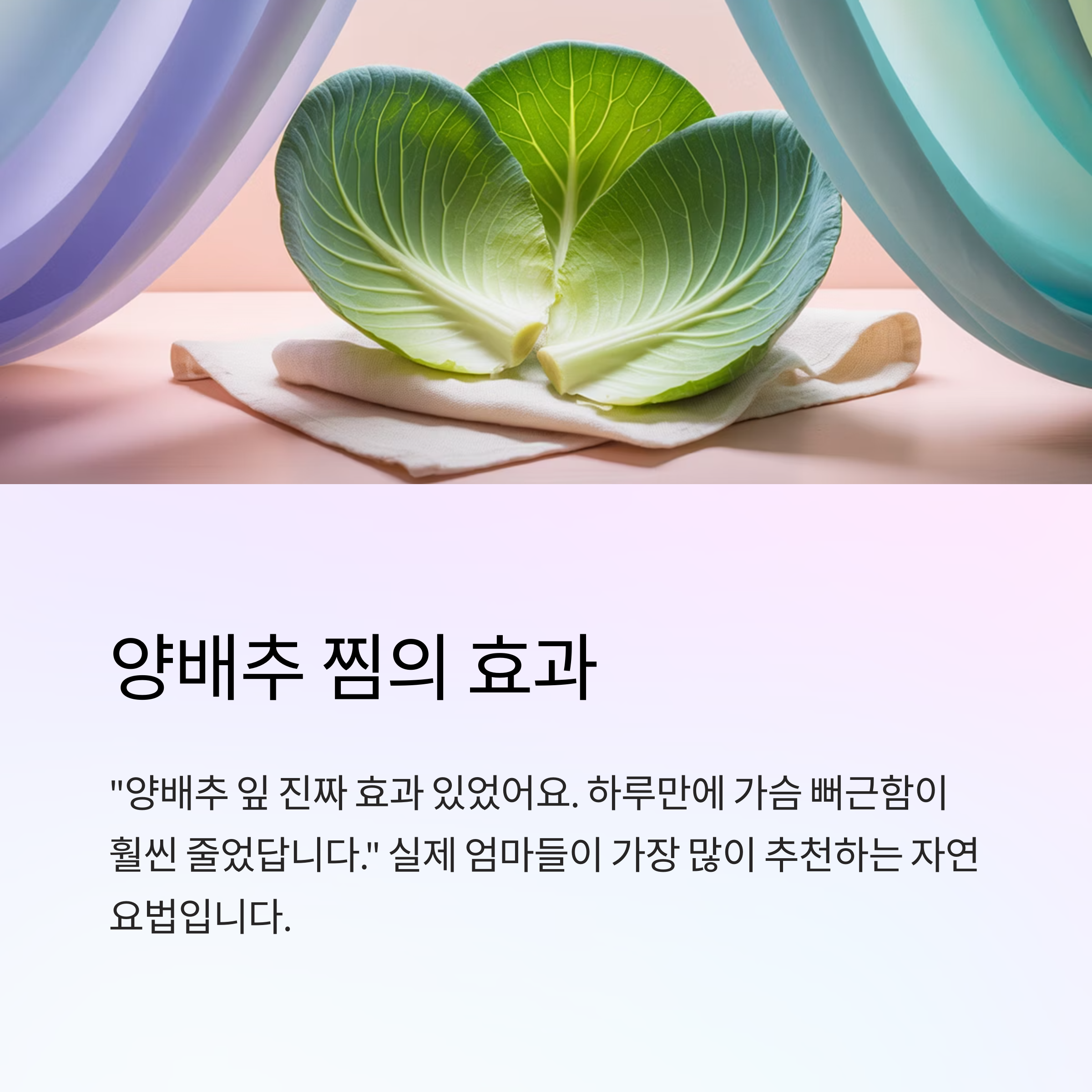 - "양배추 잎 진짜 효과 있었어요. 하루만에 가슴 뻐근함이 훨씬 줄었답니다."