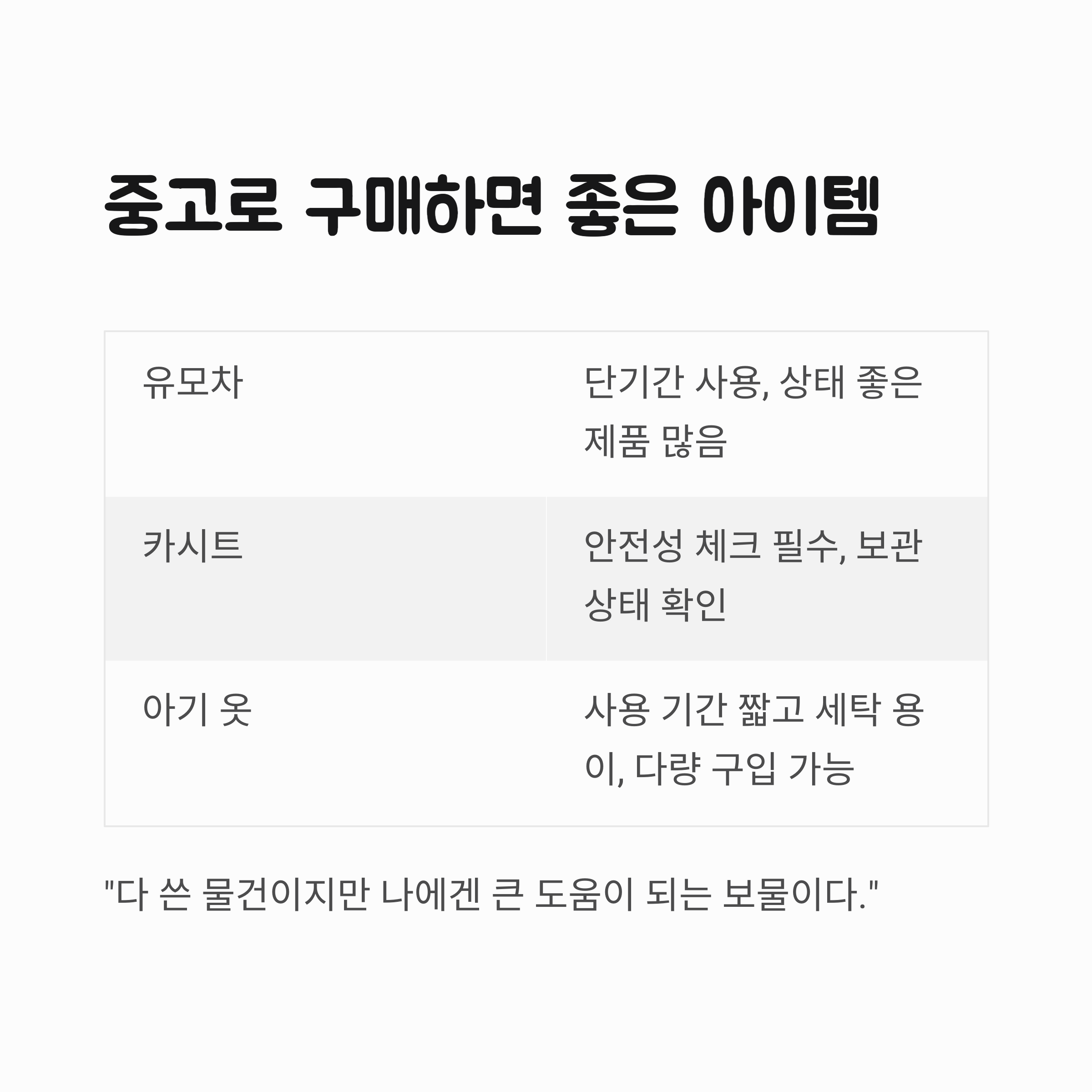 | 카시트 | 보관 상태 확인 후 구매 권장 | 안전성 체크 필수 |