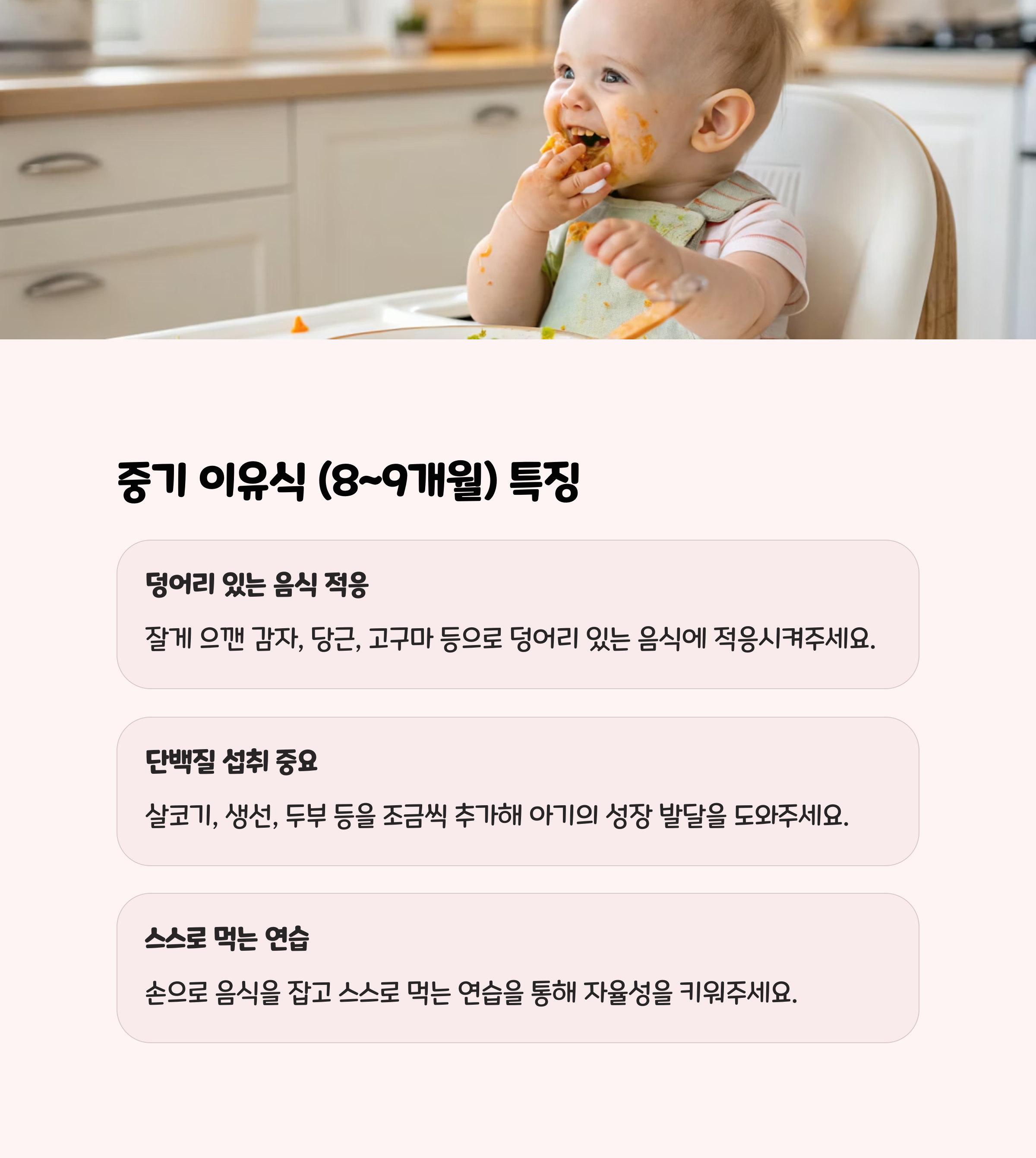 🥗 중기 이유식 (8~9개월), 무엇을 먹일까?
