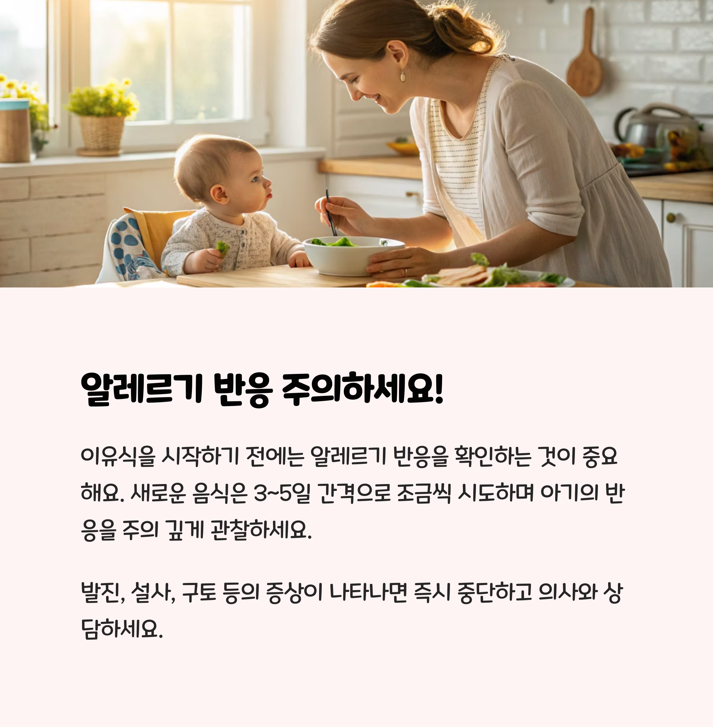 3~5일 텀 두고 천천히 도입하여 알레르기 파악 가능