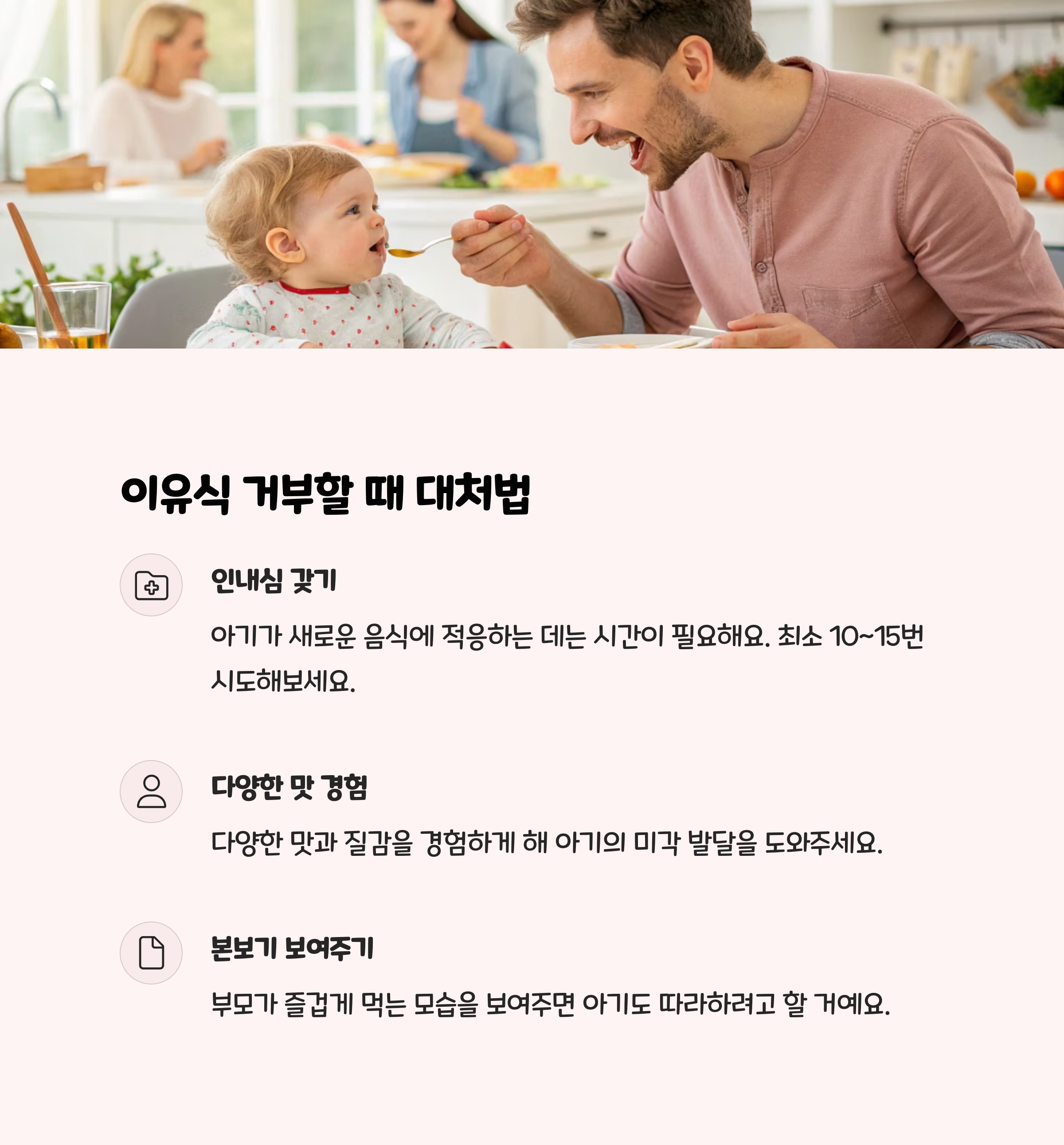 거부감이 생기면 이유식 자체를 싫어할 수 있어요