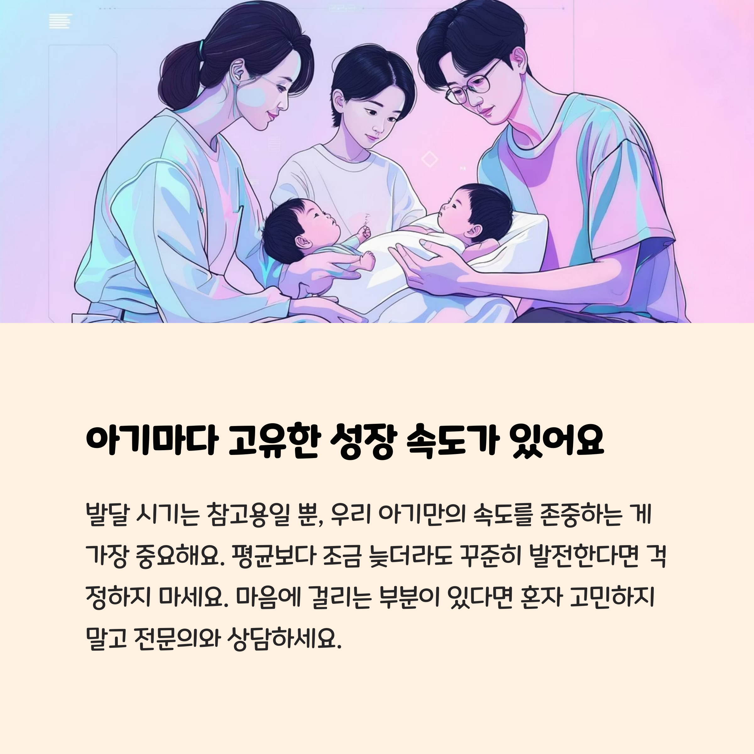 처음이라 낯설고 불안한 초보 부모의 마음, 너무 잘 알아요. 하지만 아기의 성장에는 정해진 답이 없다는 걸 잊지 마세요. 오늘 소개한 10가지 발달 포인트는 참고 기준일 뿐, 우리 아기만의 속도를 존중하는 게 무엇보다 중요해요. 혹시 마음에 걸리는 부분이 있다면 전문의와 상담하는 것도 좋은 방법이랍니다. 혼자 끙끙 앓지 말고, 우리 함께 건강하고 따뜻한 육아 이어가요!