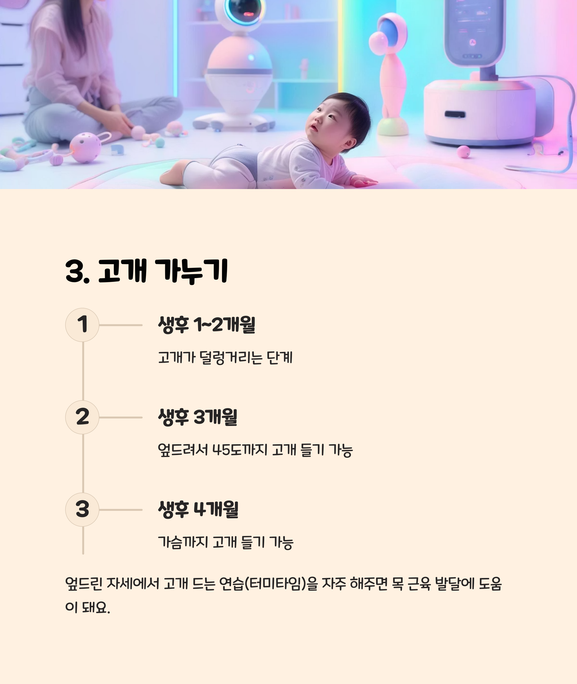 • 생후 3개월: 엎드려서 45도 고개 들기