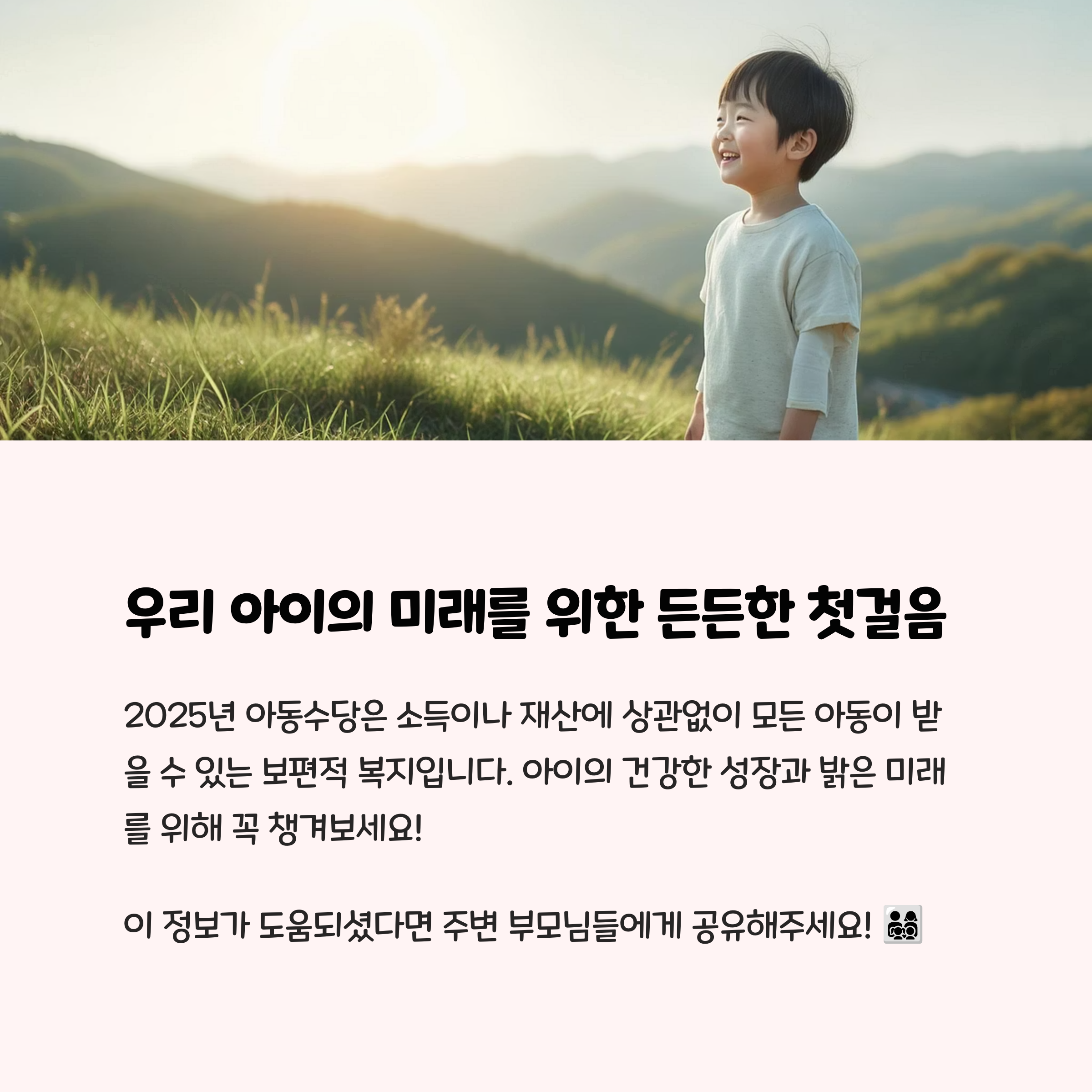 여러분의 소중한 아이들을 위한 든든한 첫 걸음, 2025 아동수당과 함께해 보세요! 😊